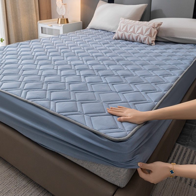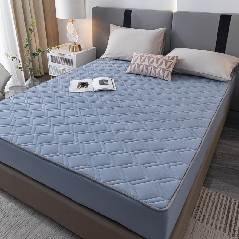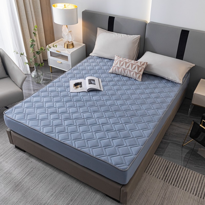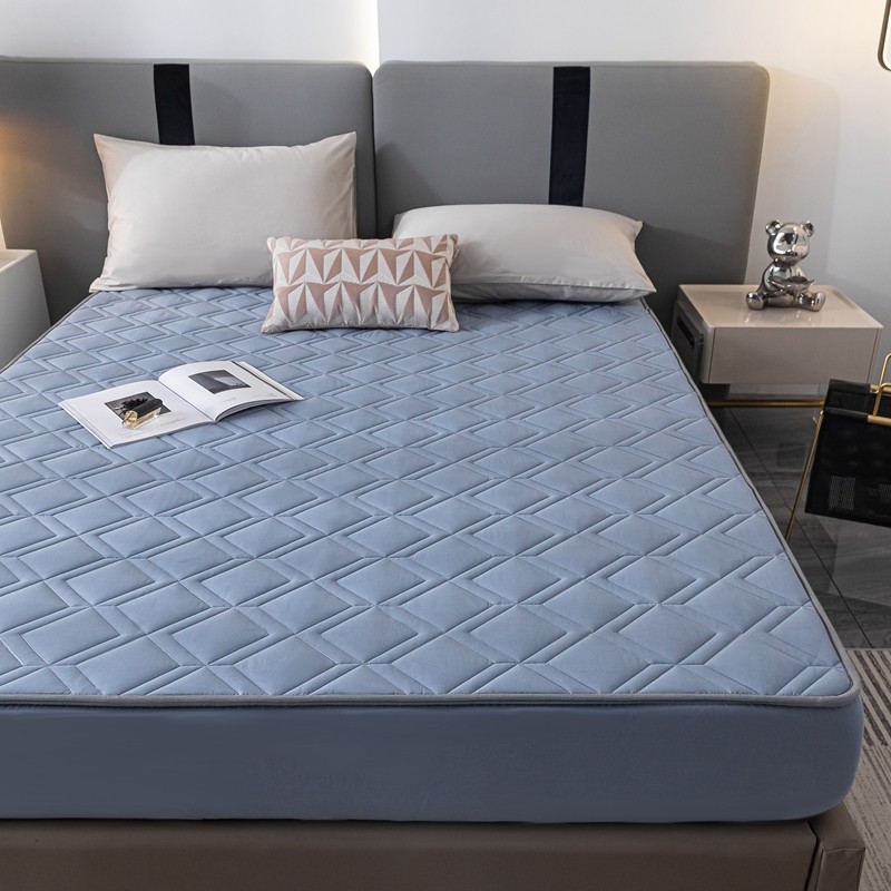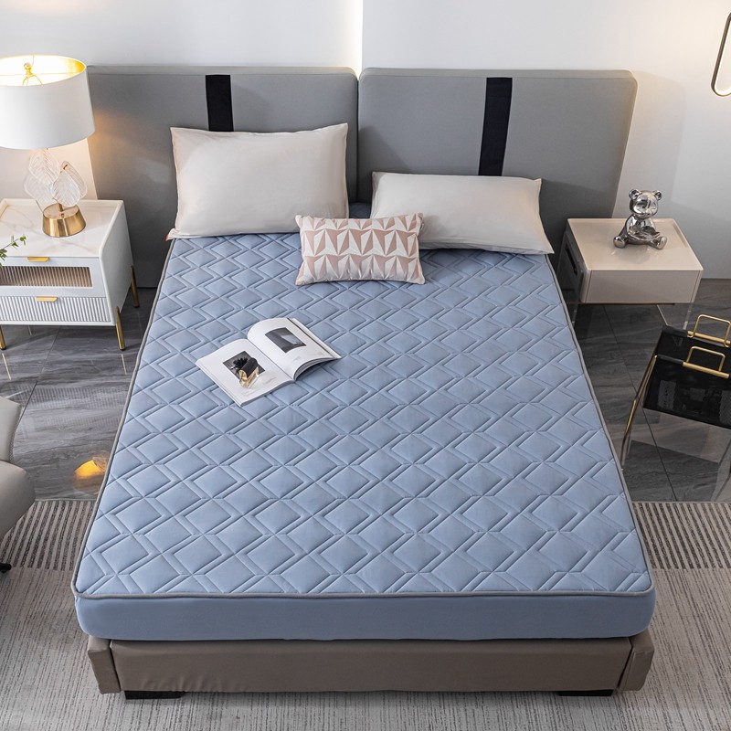 鑫钰 2023新款全棉大豆床笠纯棉抗菌夹棉床笠床垫保护罩 蓝