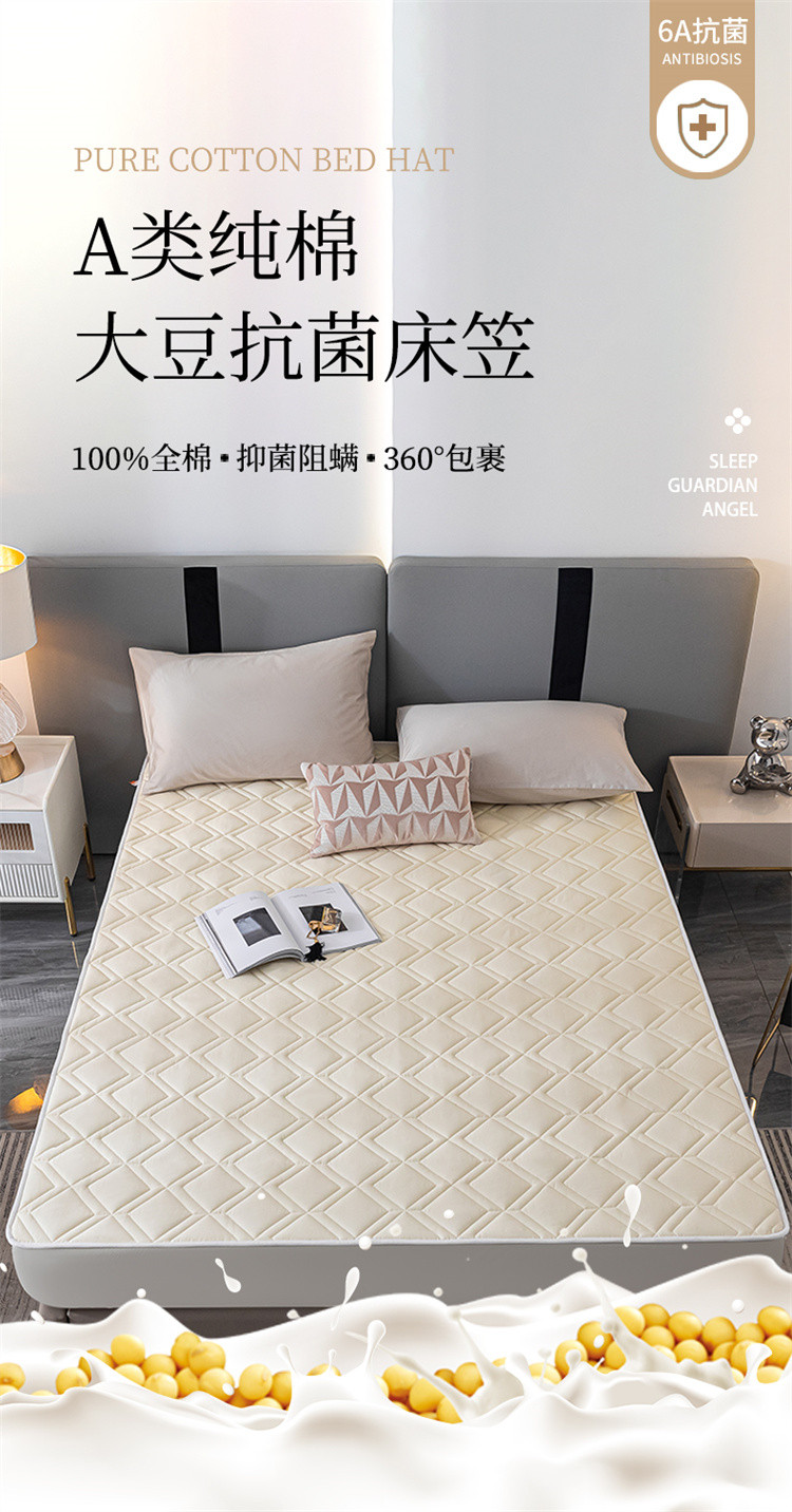 • 91家纺网 家纺一手货源 找家纺 鑫钰 2023新款全棉大豆床笠纯棉抗菌夹棉床笠床垫保护罩 蓝