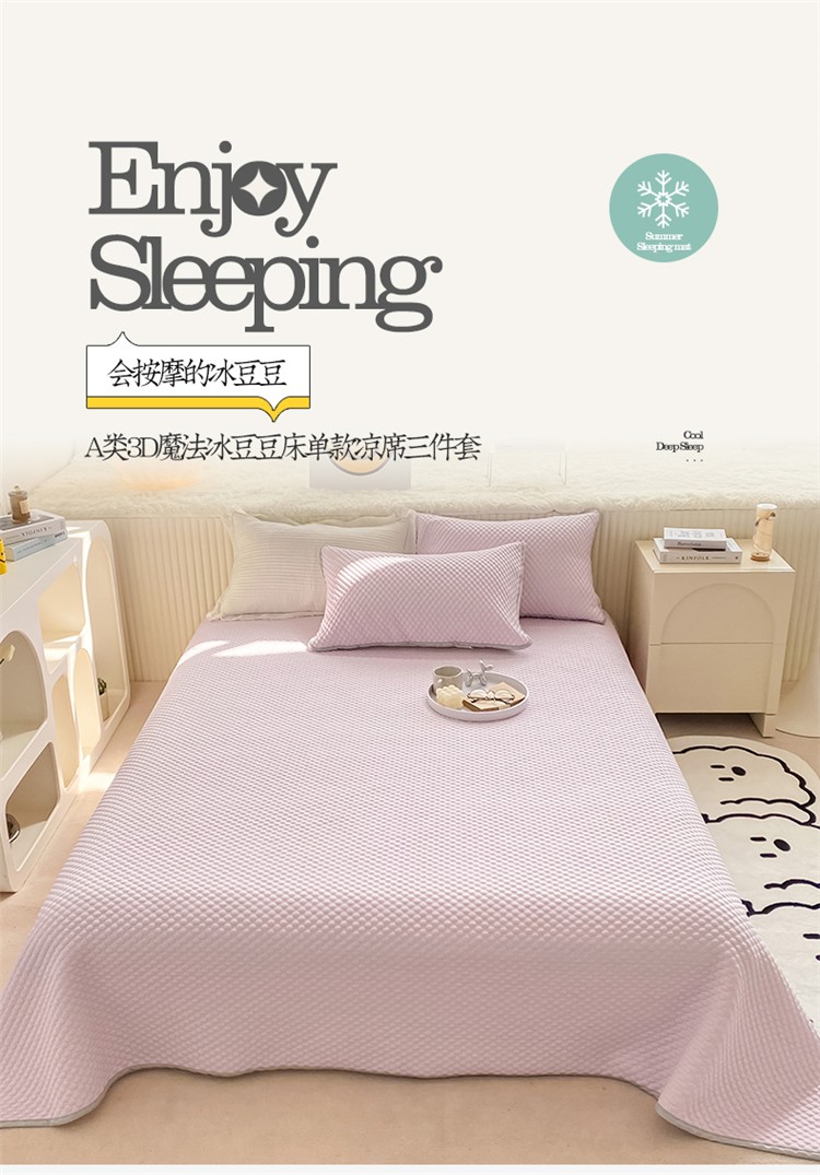桃子家居 2022新款A类3D魔法冰豆豆科技凉席三件套床单款 床单款-紫