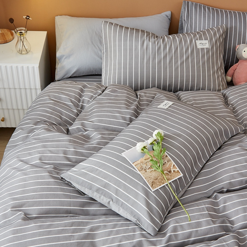 当前位置: 91家纺网 > 商品网购 > 床品套件 > 四件套 > 化纤普通四件套 > 宝士康 2023新款无印风系列四件套 麻灰白条