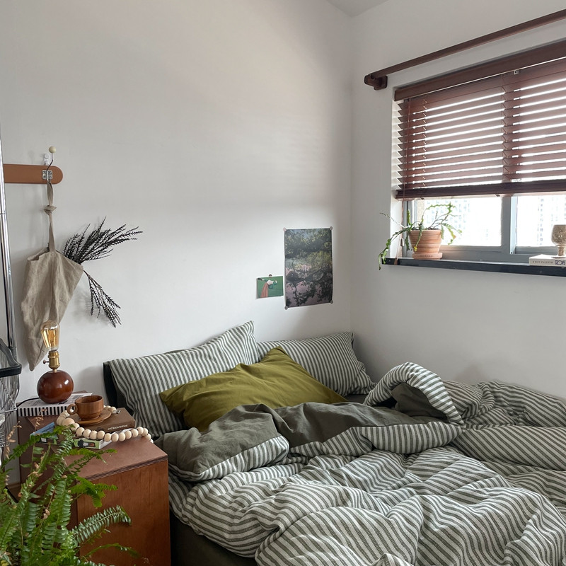 (总)恋恋三季 2025新款ins博主简约条纹极简风纯棉单被套,色织水洗-黑白世界,色织水洗-空白格