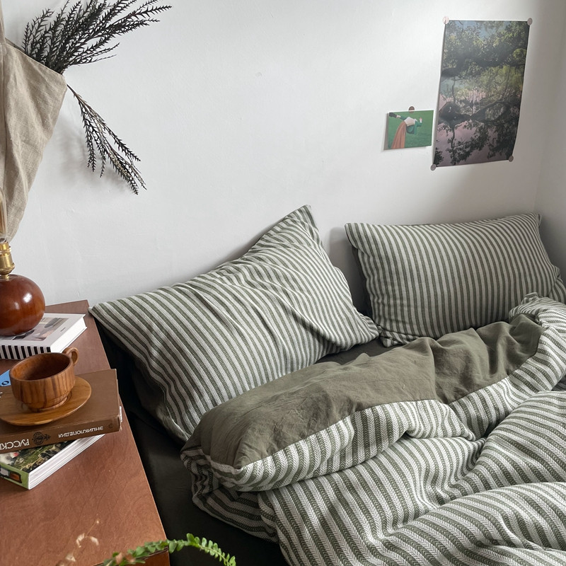 (总)恋恋三季 2025新款中古风色织水洗棉四件套-琉璃伯爵,琉璃伯爵【枕套bv绿+藏蓝】,琉璃伯爵【枕套混搭bv绿】,琉璃伯爵【枕套混搭藏蓝】,琉璃伯爵【枕套条纹】