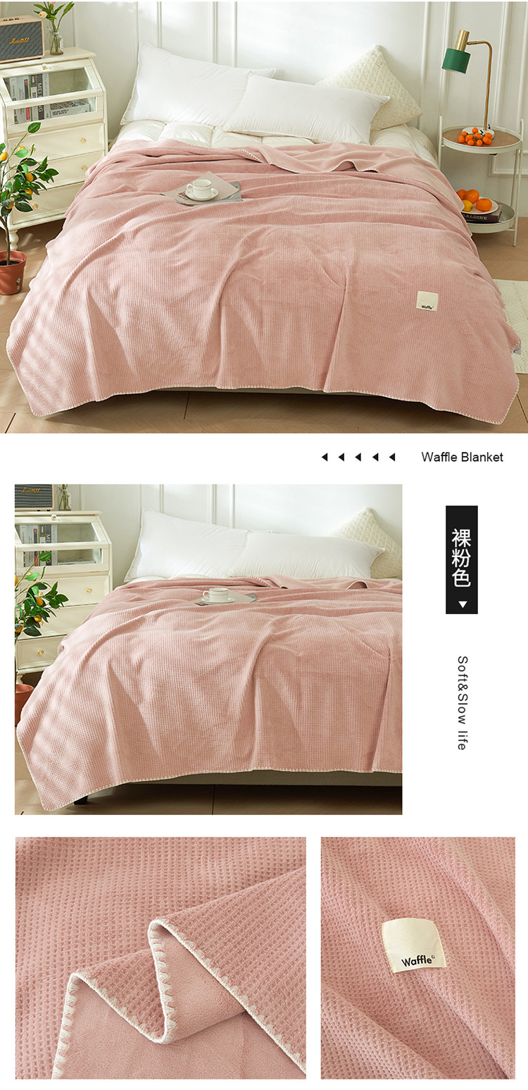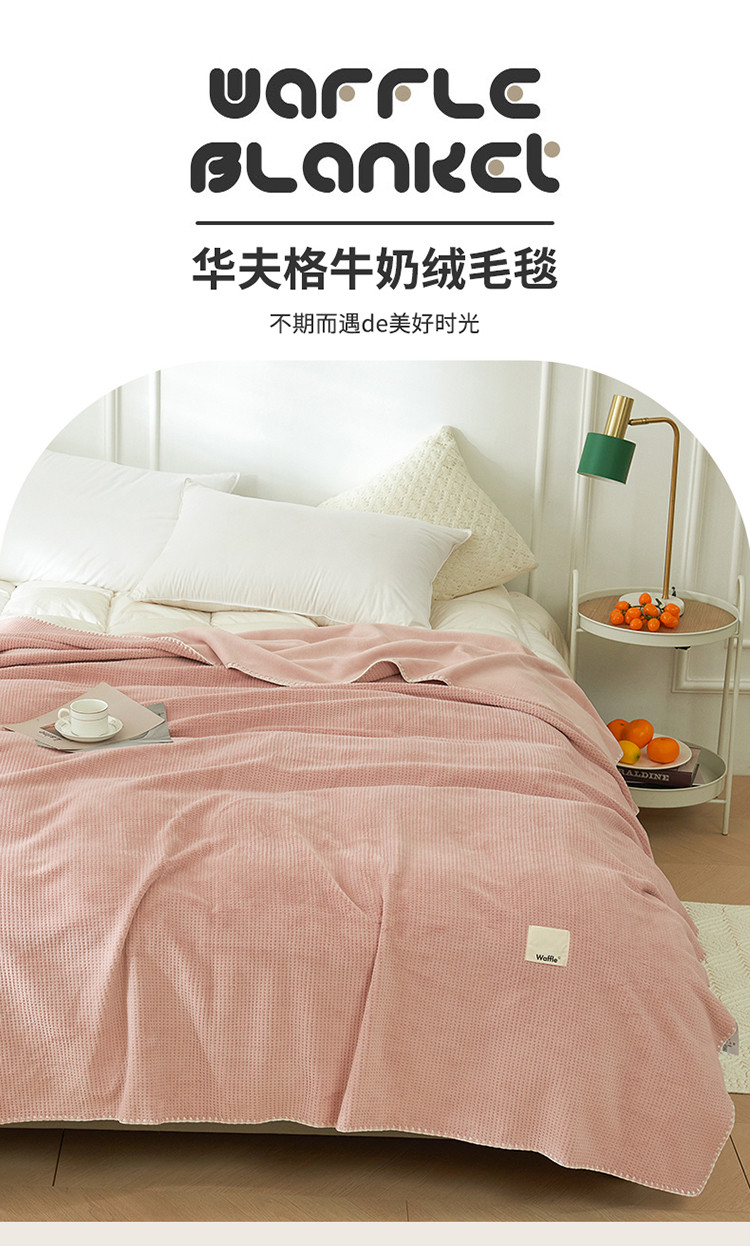 商品名称:馨米莱 2024新款华夫格毛毯牛奶绒夏被毯空调毯 裸粉色