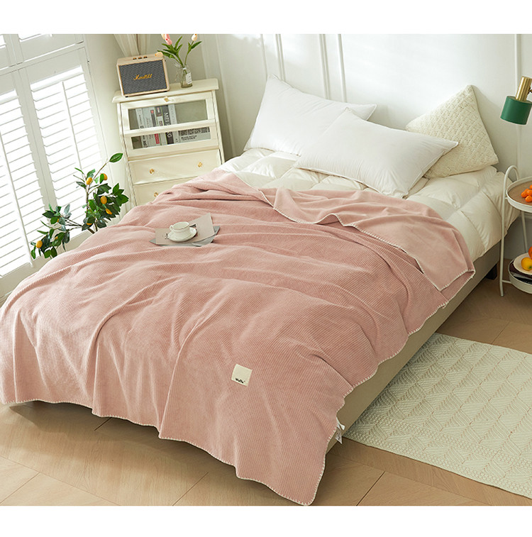 馨米莱 2024新款华夫格毛毯牛奶绒夏被毯空调毯 裸粉色