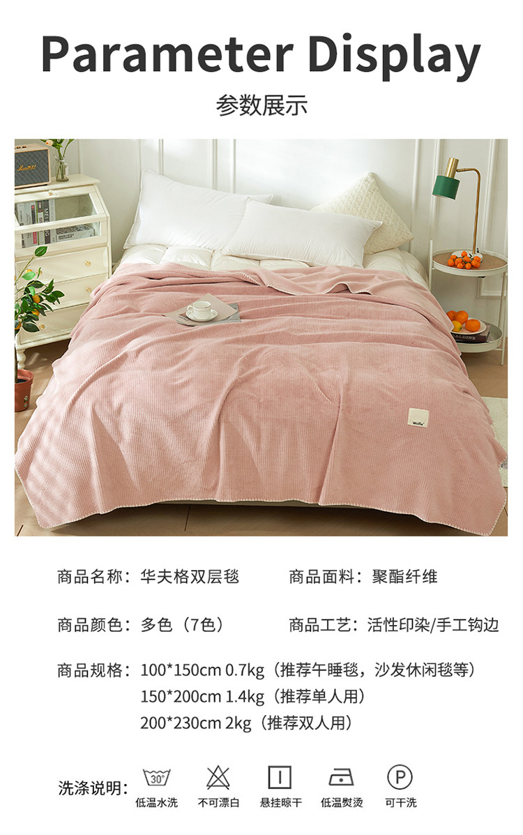 (总) 馨米莱 2024新款华夫格毛毯牛奶绒夏被毯空调毯,豆绿色,焦糖色,裸粉色,米灰色,明黄色,雾蓝色,嫣红色,白色