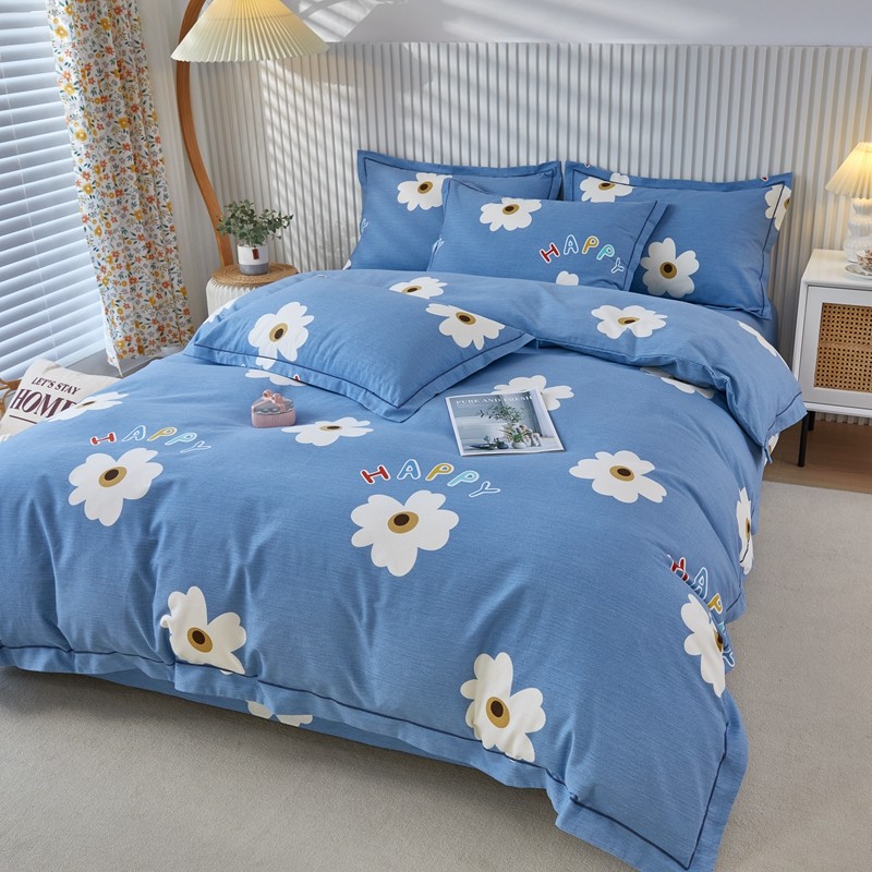 杜先生 2023新款全棉加厚磨毛系列四件套浅浅花漾-蓝