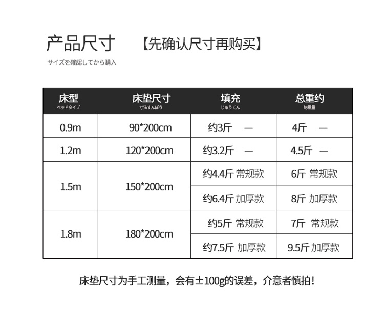 180×200(9.5斤)加厚款 | ¥170.00 |