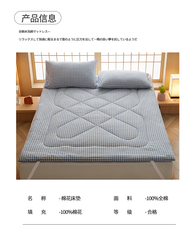 当前位置: 91家纺网 > 商品网购 > 床垫/床褥/床护垫 > 普通床垫 > 23新款A类里外全棉色织棉花床垫加厚纯棉冬被学生全棉床褥欢乐