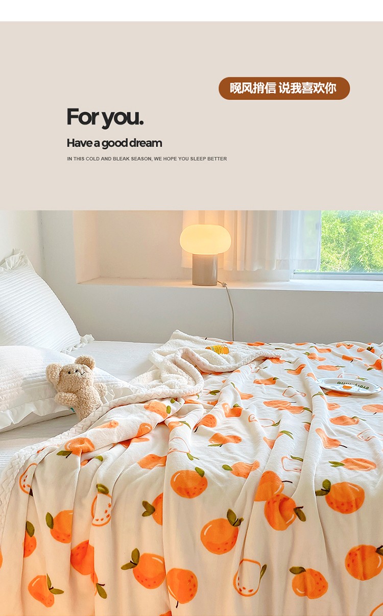 商品名称:木堇家居2022秋冬牛奶绒羊羔绒毛毯 暖小橘