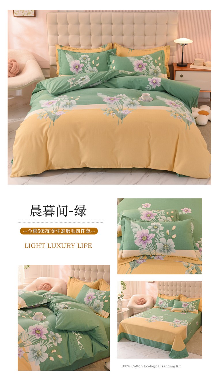 商品名称:巧玲珑2025新款铂金生态棉四件套晨暮间-绿