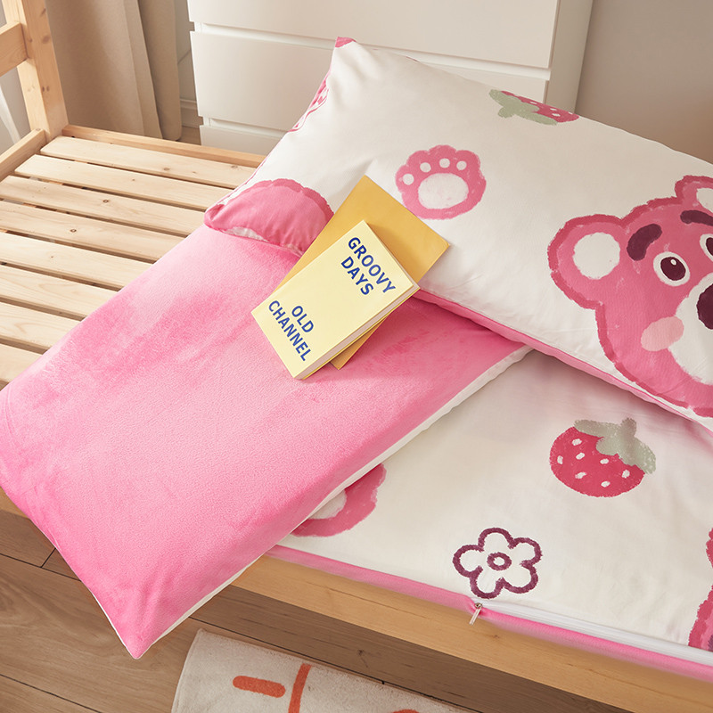 怡家居 2023新款棉加水晶绒开学季学生床垫套 草莓熊