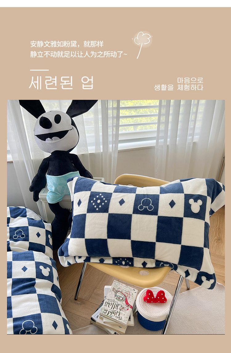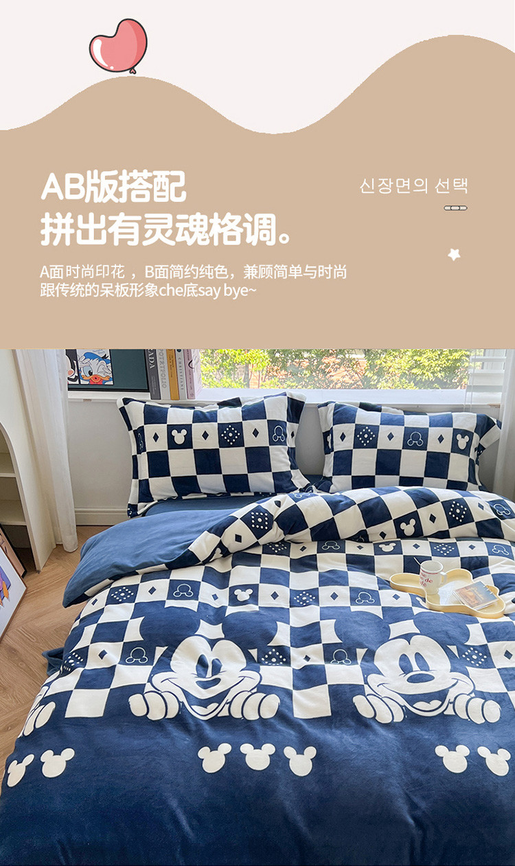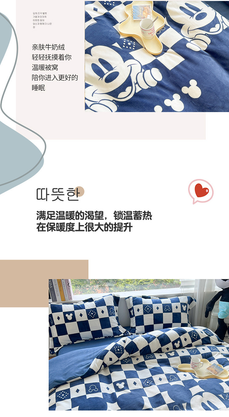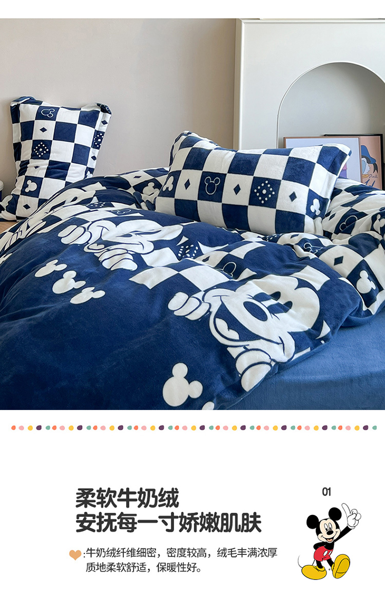柚子 2022新款迪士尼专版授权牛奶绒四件套 米奇连连看