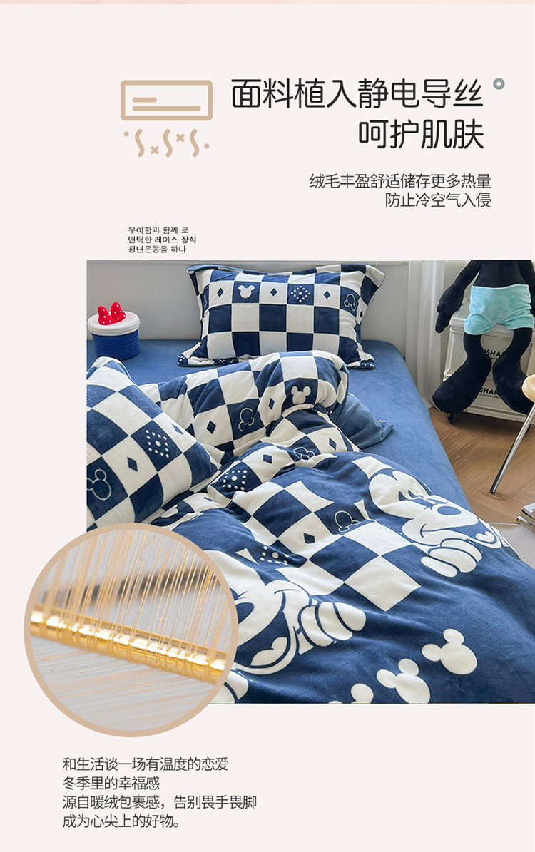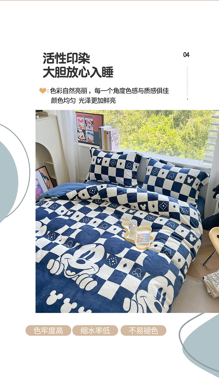 商品名称:柚子 2022新款迪士尼专版授权牛奶绒四件套 米奇连连看