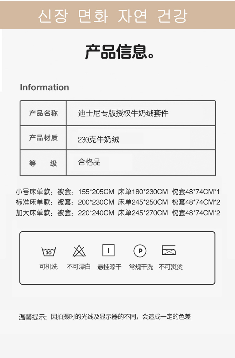 3、通州区市场监督局友情提醒,近期涉及到床上用品不褪色不掉毛不缩水的投诉和以世界知名品牌图案为面料的床品举报较多。请各商家自检自查,对照整改或进行下架处理。