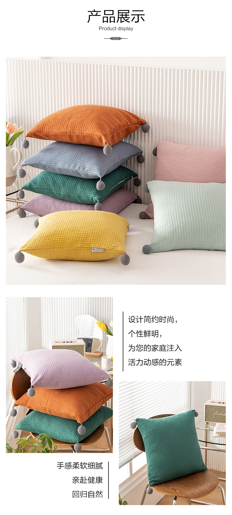 (总)美茉家居 2025新款加厚高端沙发布雪尼尔滚边方枕抱枕,缎面红,孔雀绿,南瓜橘,烟雨灰,珍珠白