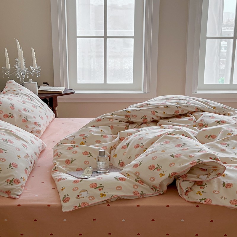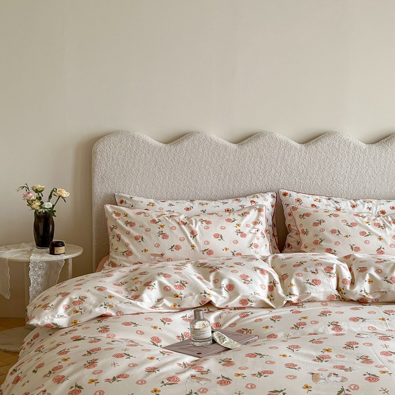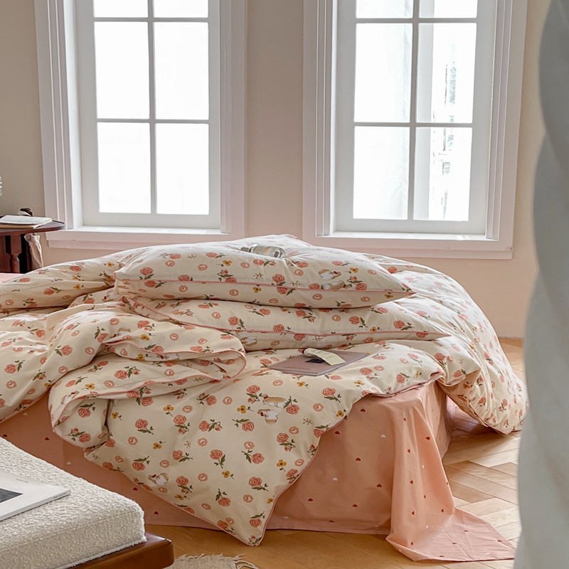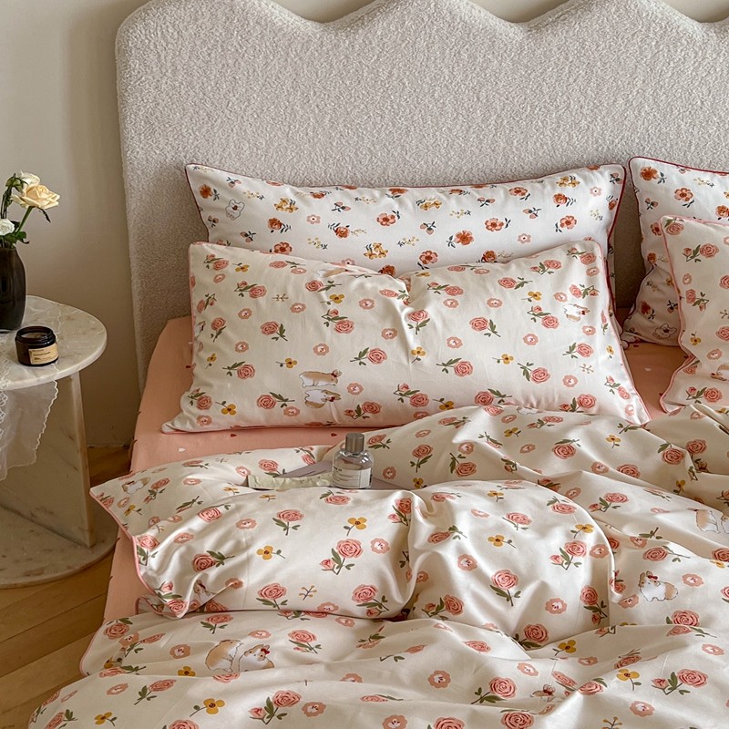 顾里家纺 2023新款法式复古嵌绳全棉四件套 花园小兔