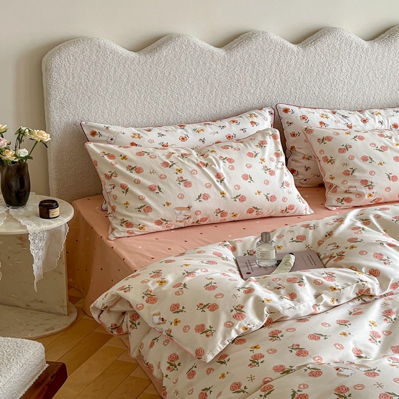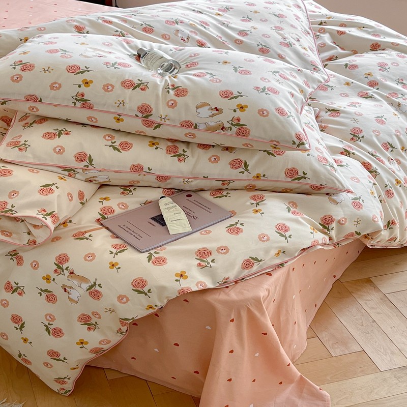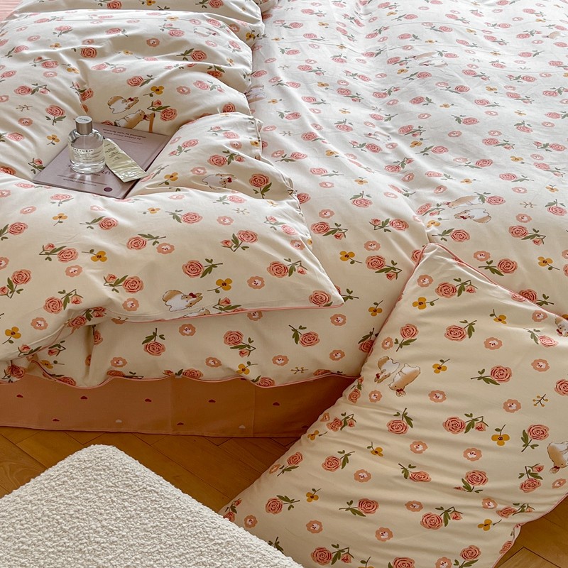 商品名称:顾里家纺 2023新款法式复古嵌绳全棉四件套 花园小兔