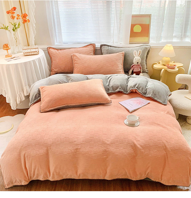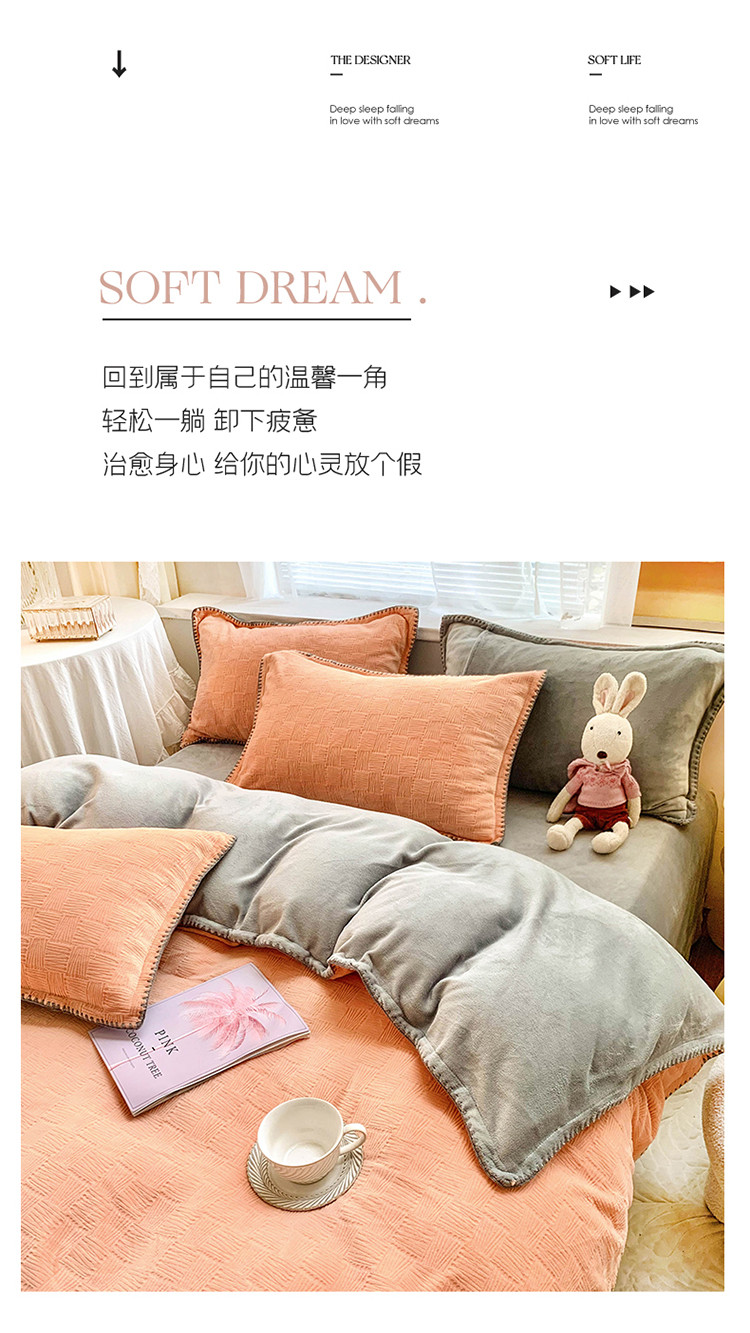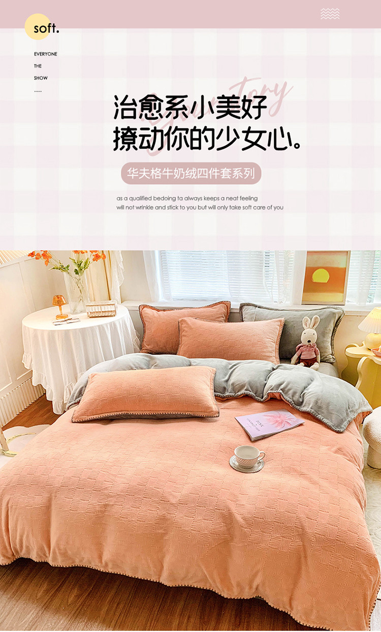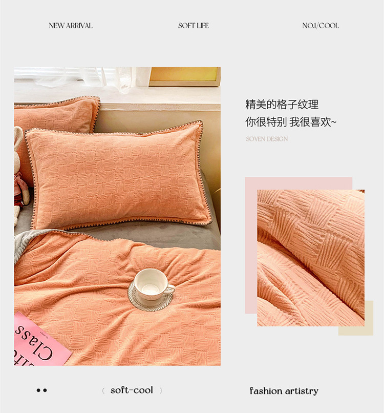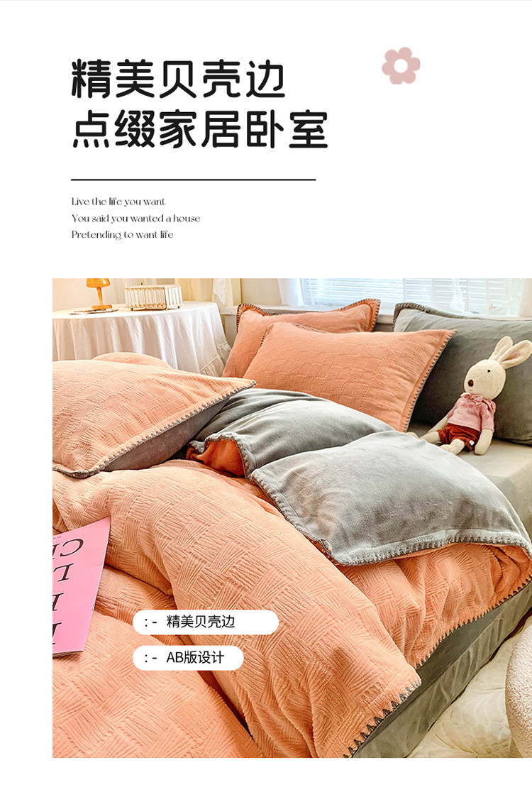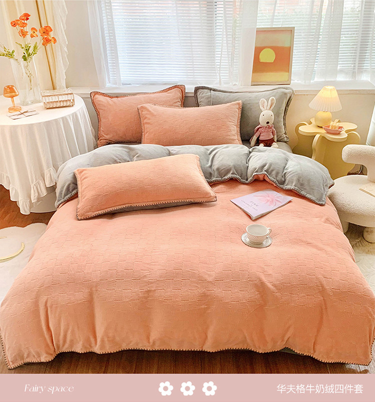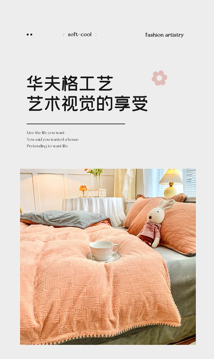 当前位置: 91家纺网 > 商品网购 > 床品套件 > 四件套 > 牛奶绒四件套 > 莱茵 2023秋冬新款ins华夫格贝壳边牛奶绒四件套 暮冬橙