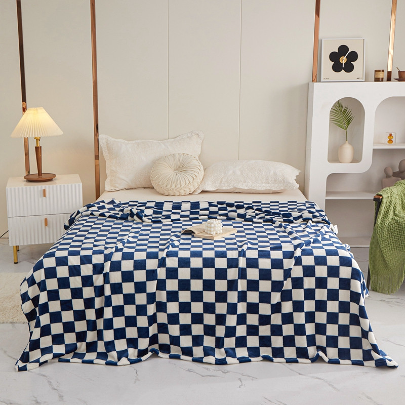 商品名称:新丽佳2022新款法兰绒棋盘格毛毯 宝石蓝