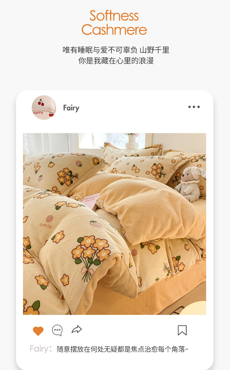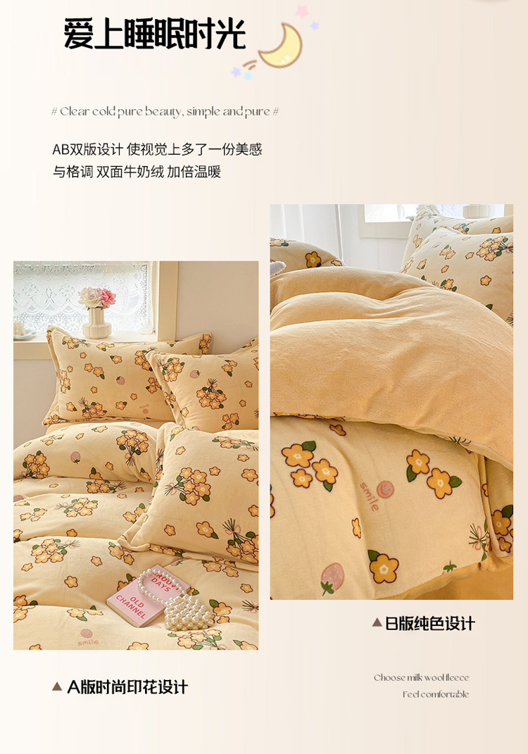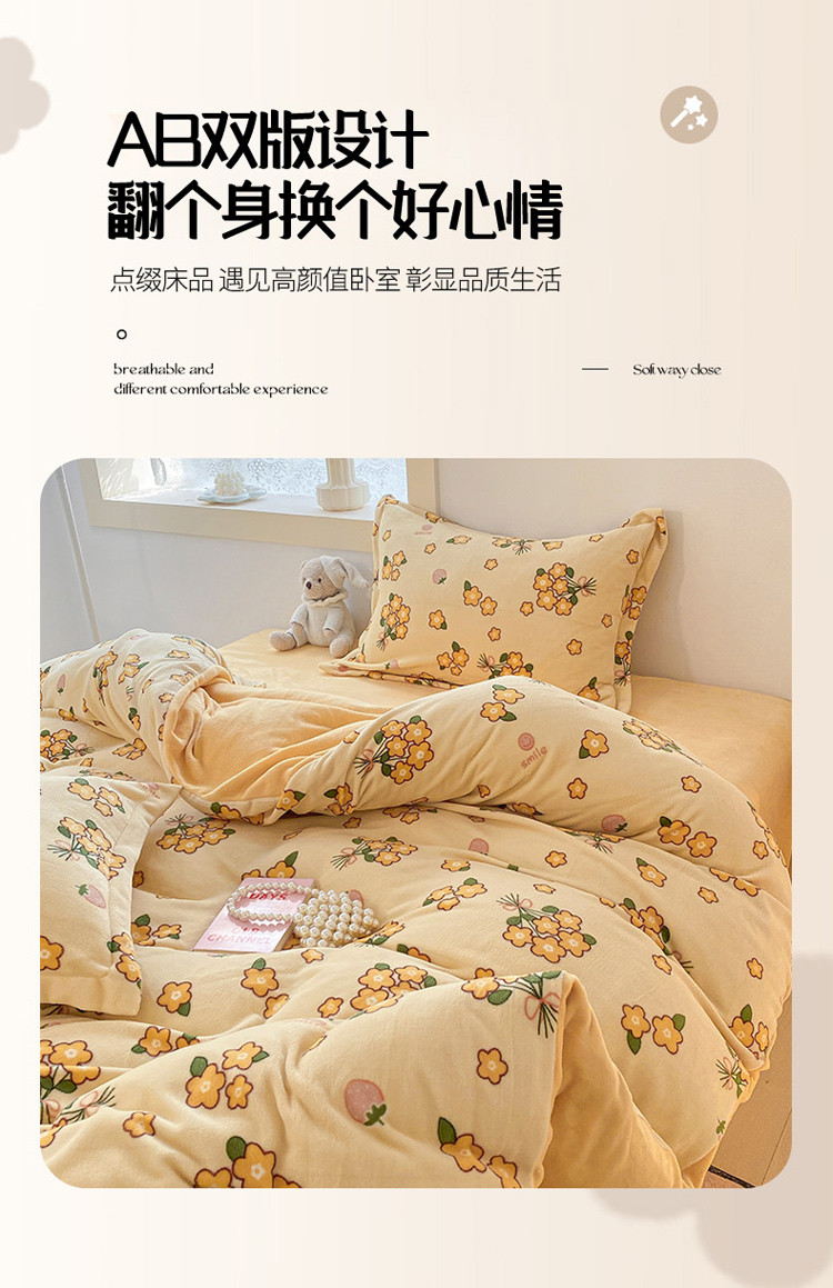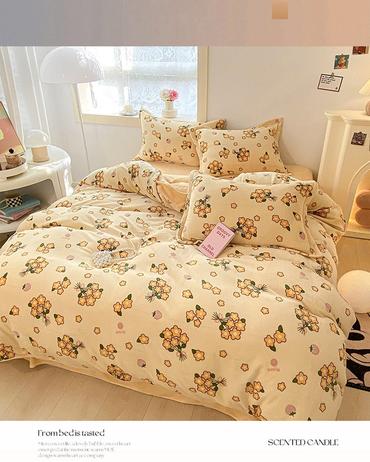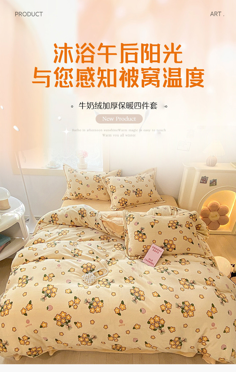 沐慕 2022新款牛奶绒四件套 花儿朵朵