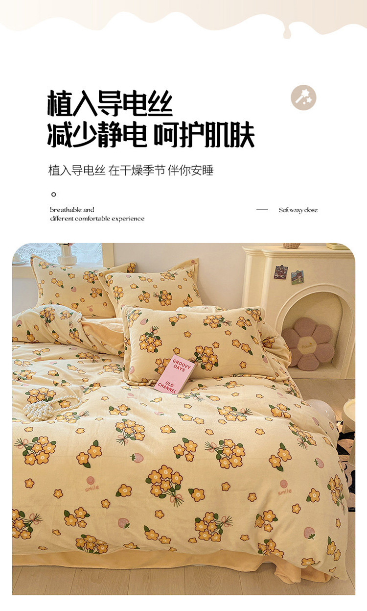 商品名称:沐慕 2022新款牛奶绒四件套 花儿朵朵