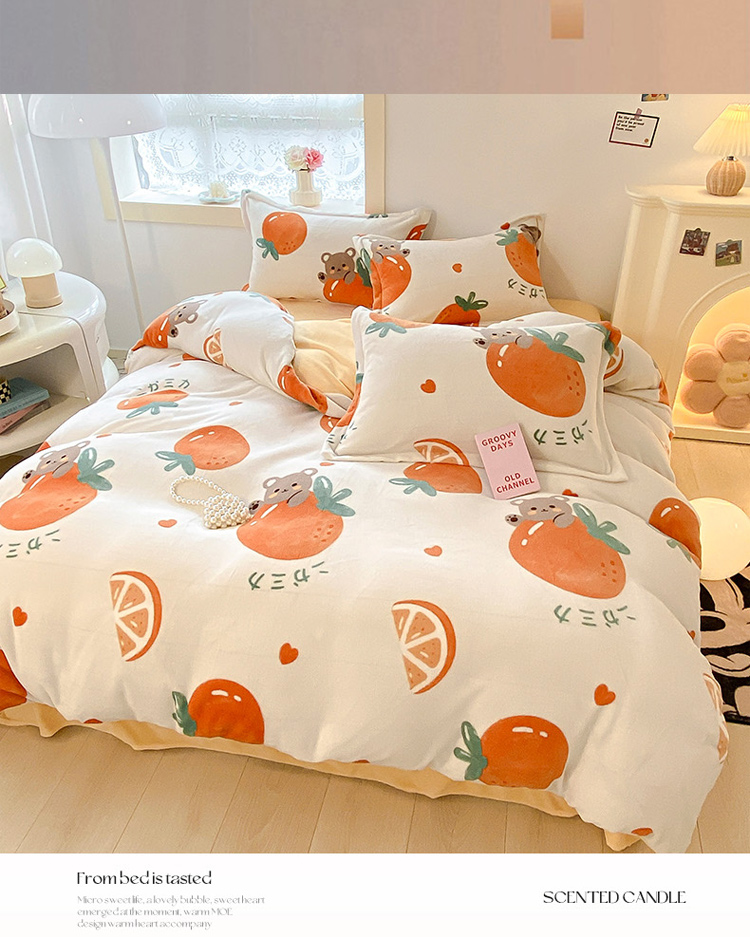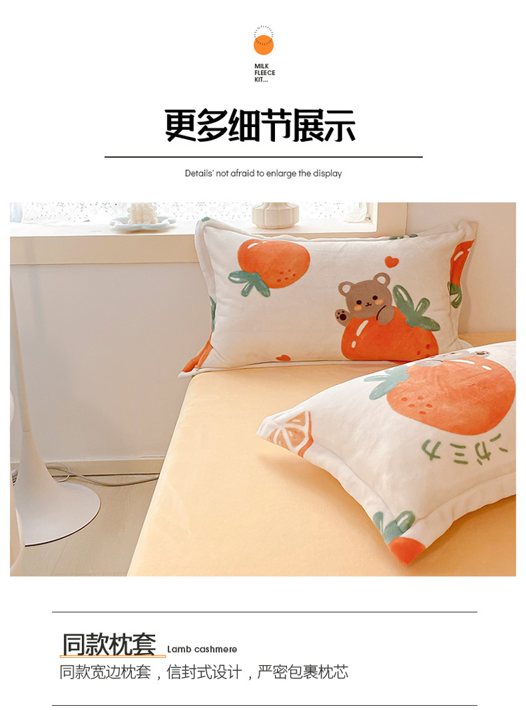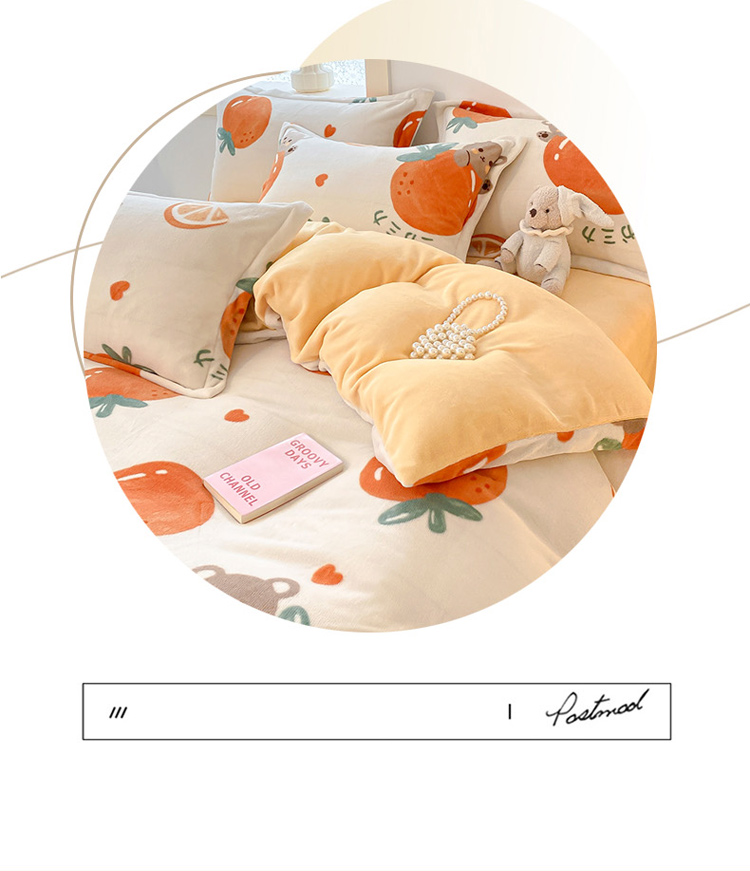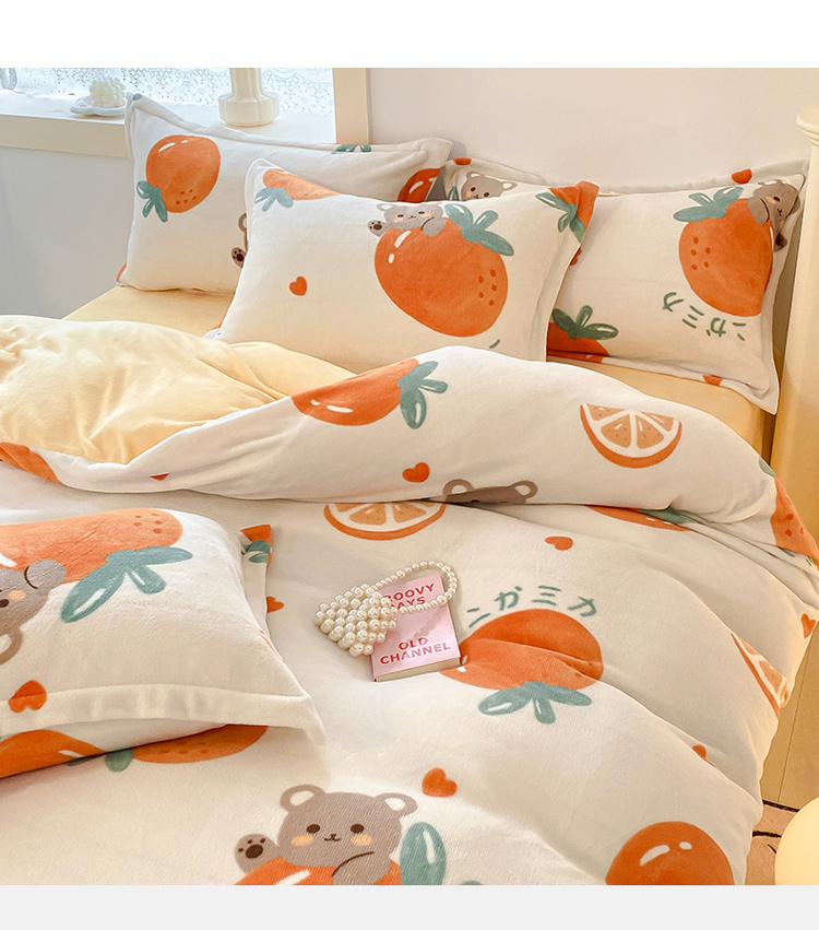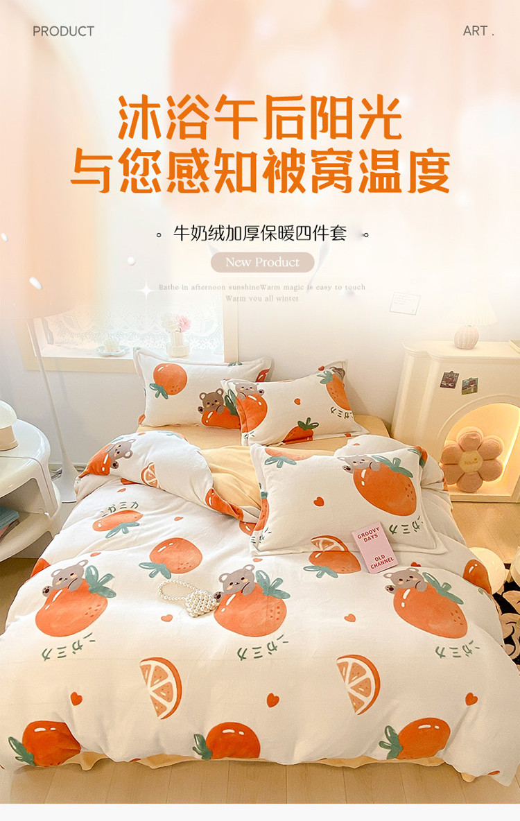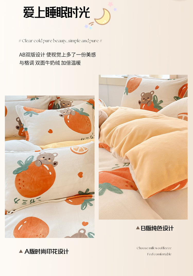 沐慕 2022新款牛奶绒四件套 甜橙小熊