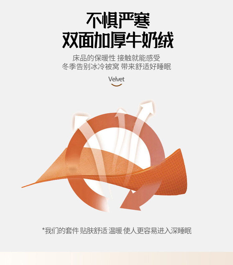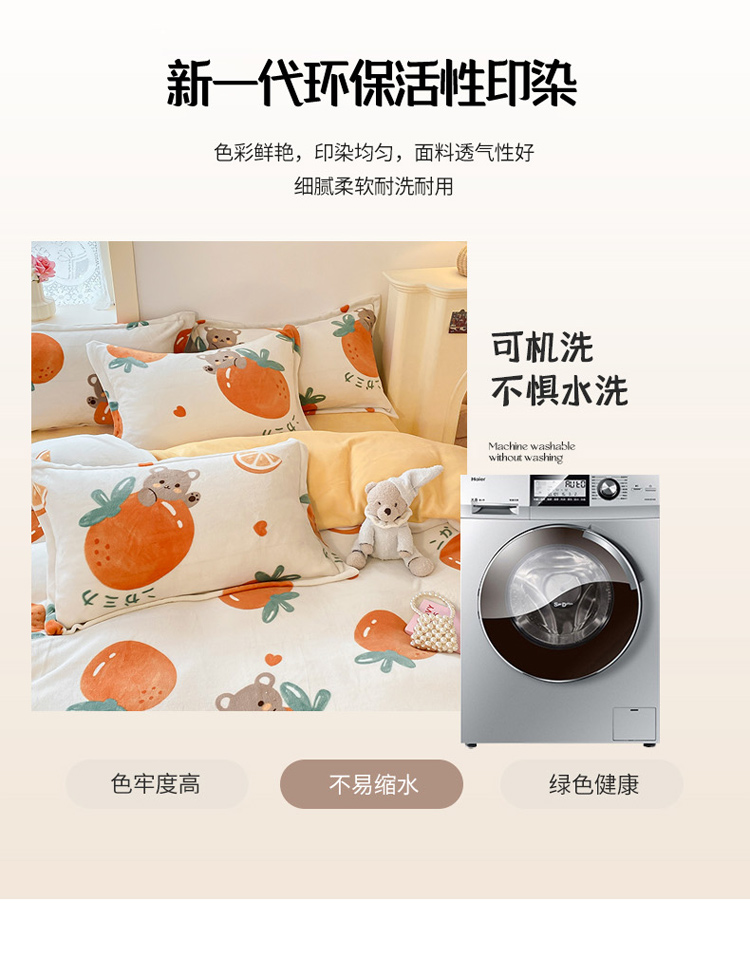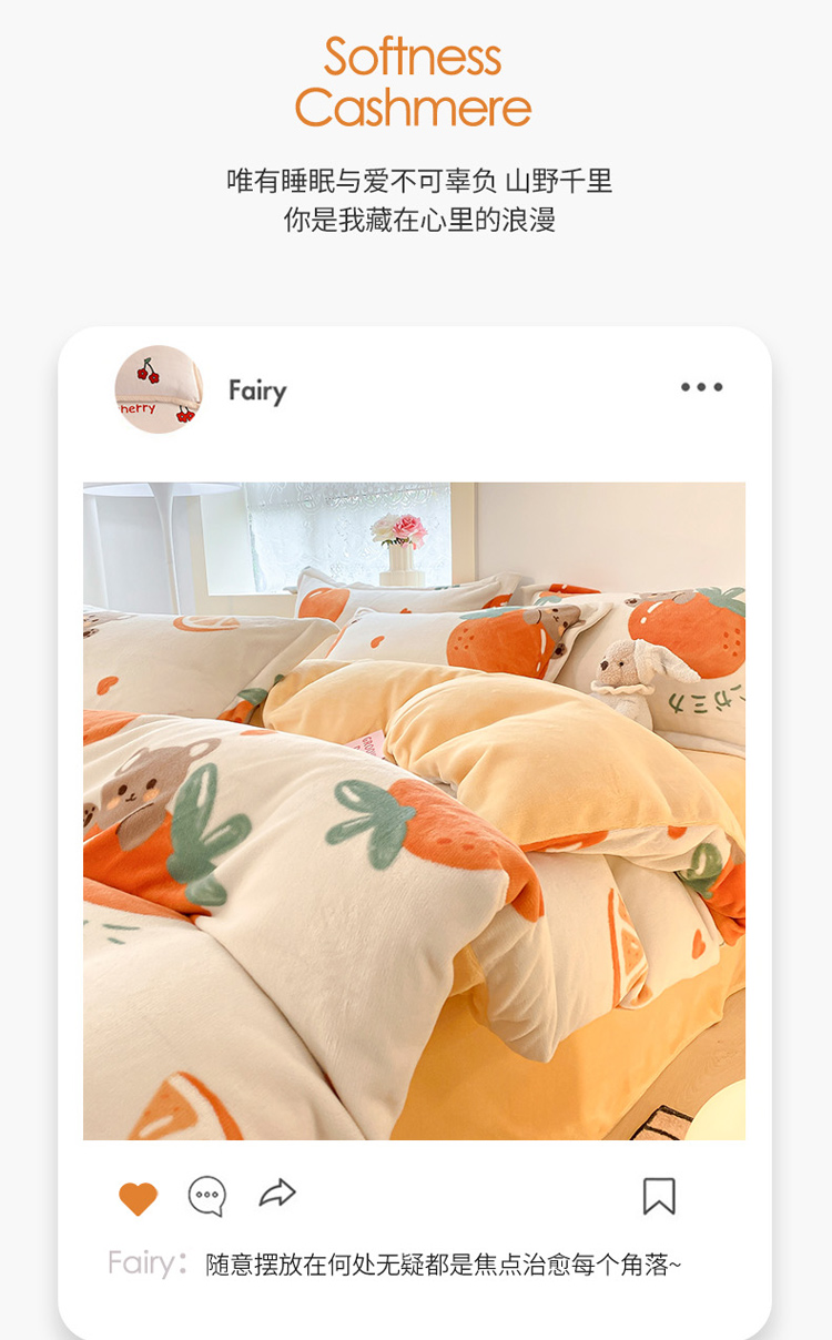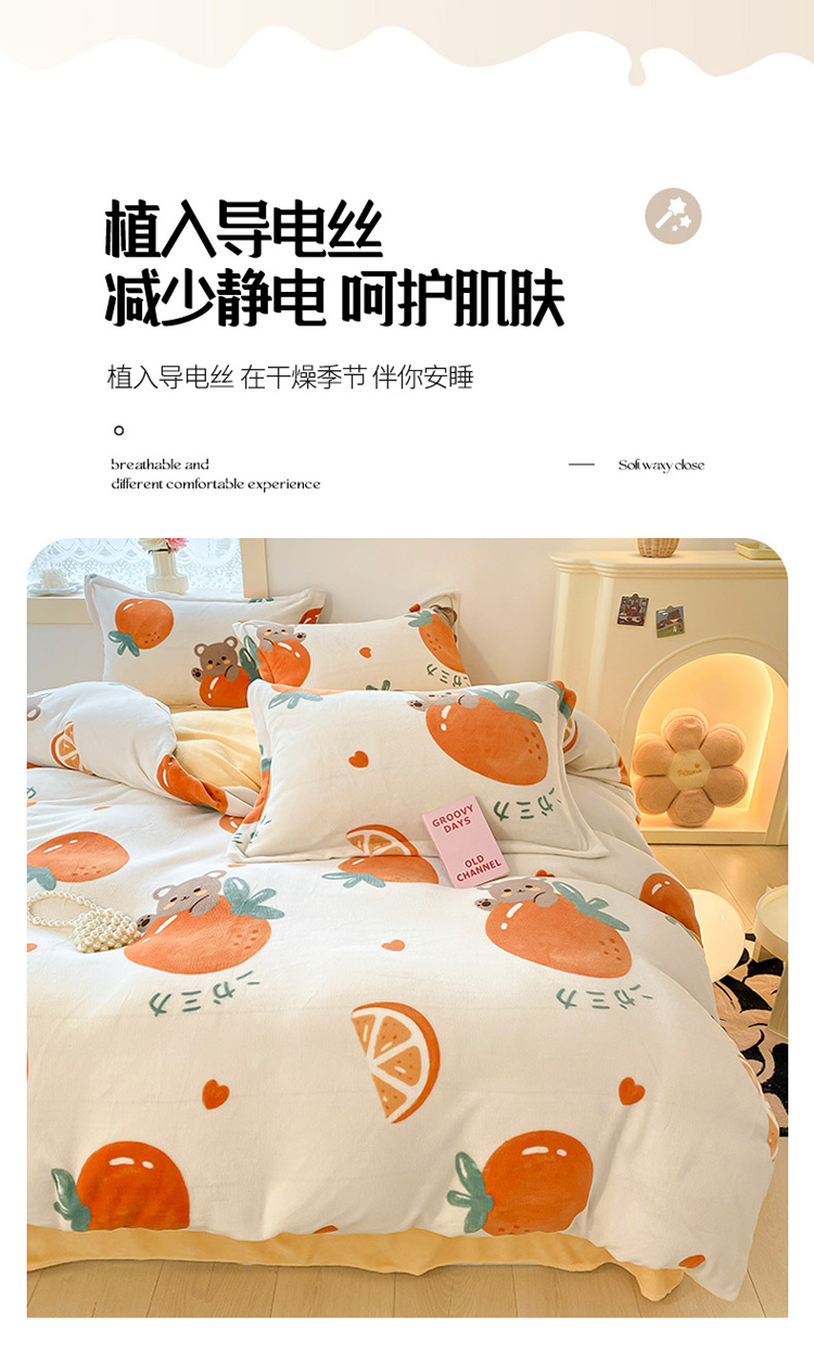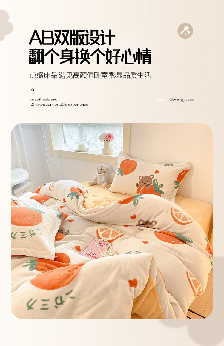 沐慕 2022新款牛奶绒四件套 甜橙小熊