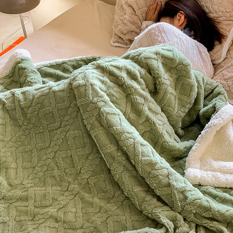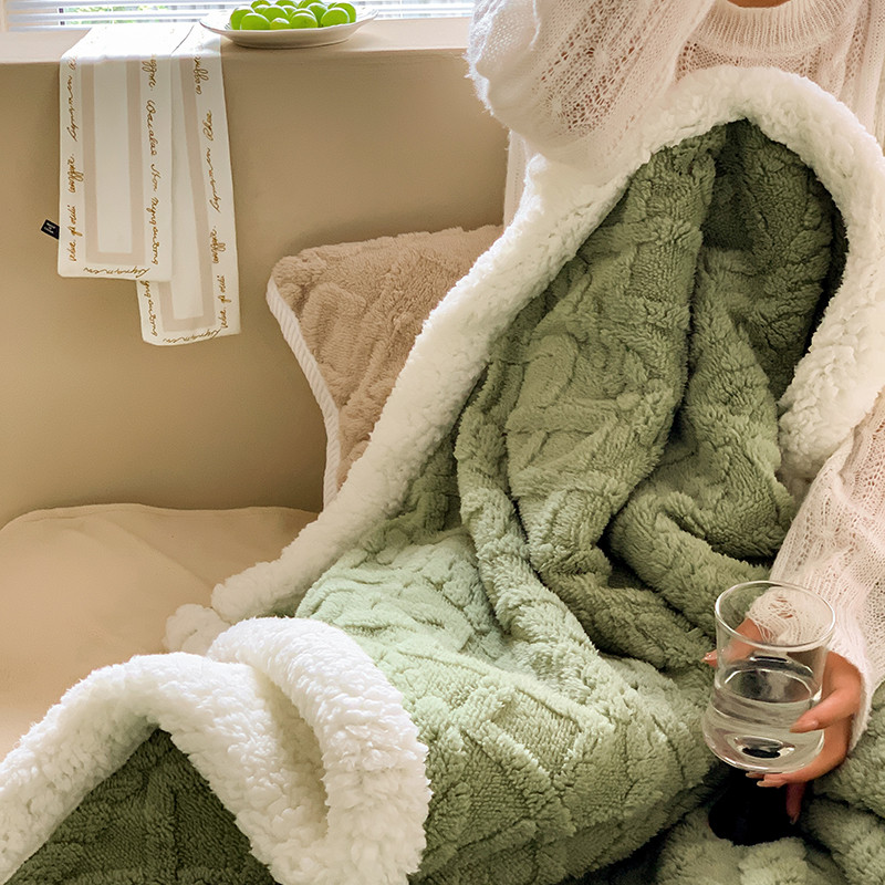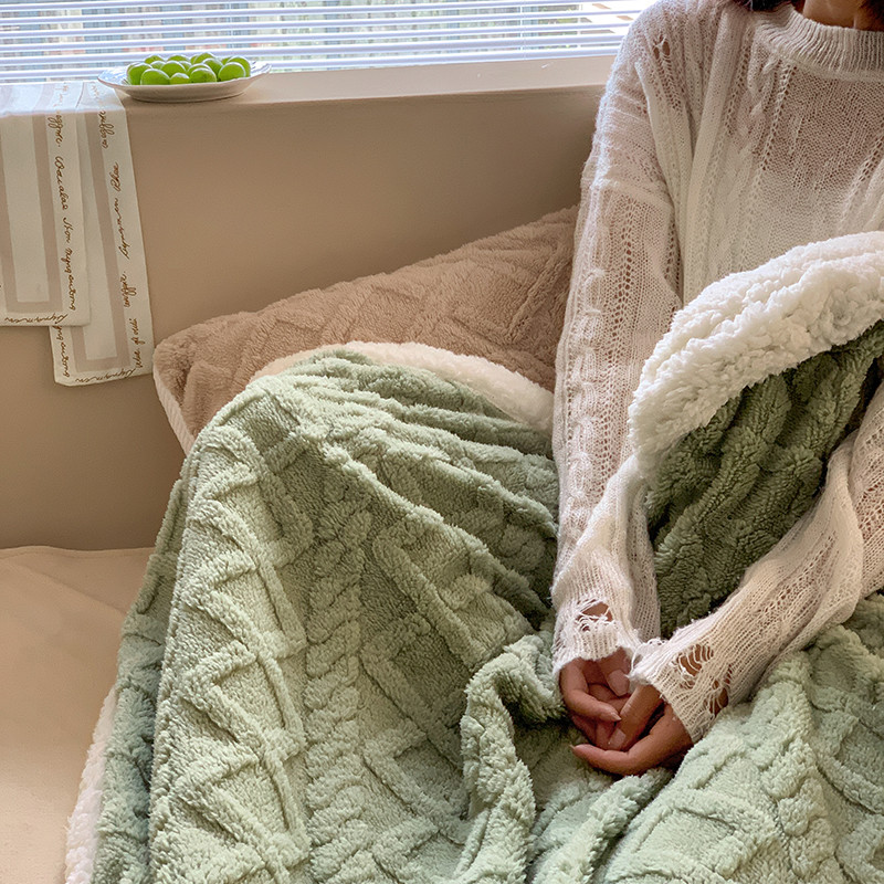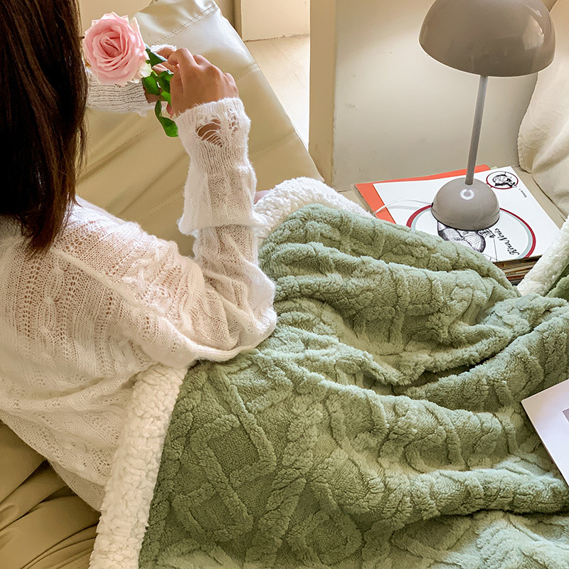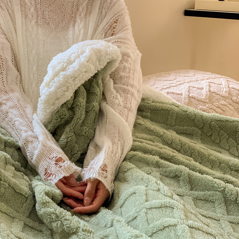 昔可家纺 2022新款ins风纯色保暖塔塔绒多功能毛毯 波纹绿