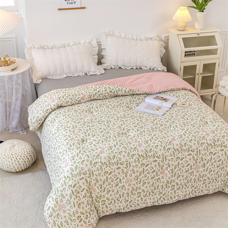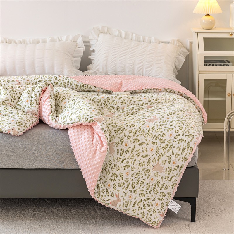 亚龙工厂店 2023新款A类针织棉豆豆被 花丛兔