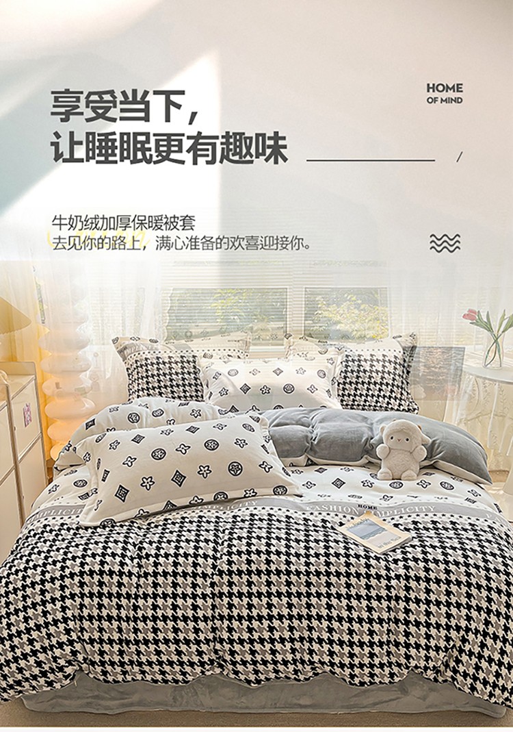 商品名称:慕尚 2022新款牛奶绒保暖单被套 千鸟格