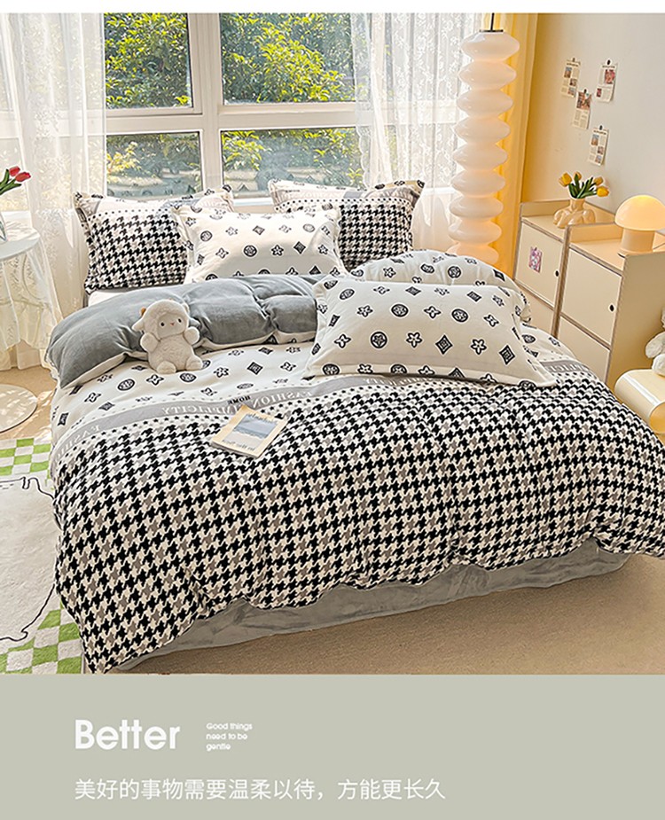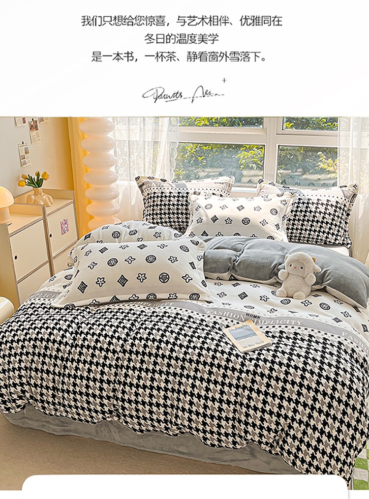 慕尚 2022新款牛奶绒保暖单被套 千鸟格