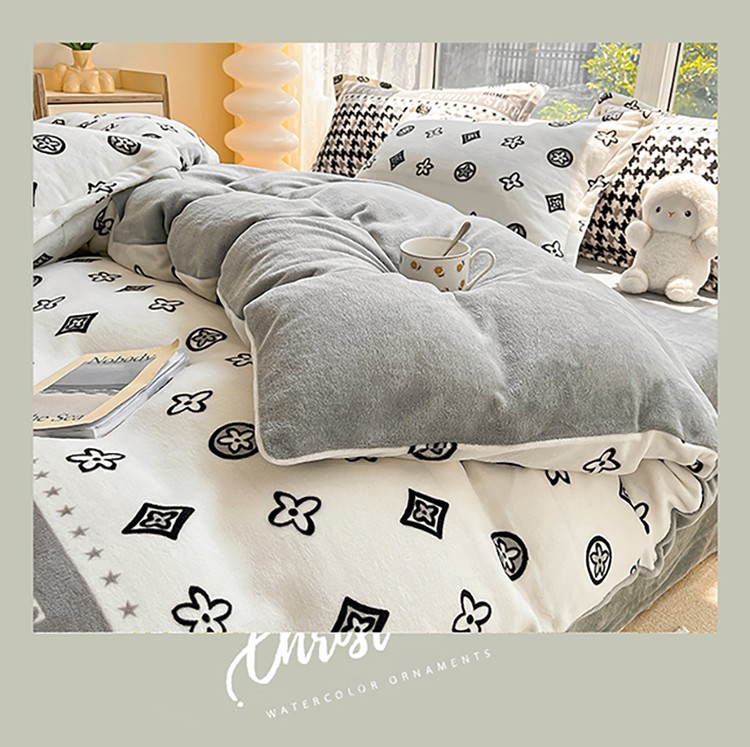 (总)慕尚家纺 2025新款豆豆绒刺绣四件套,大耳狗 白蓝,玫瑰 白粉