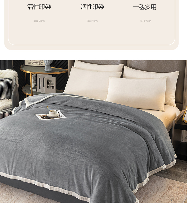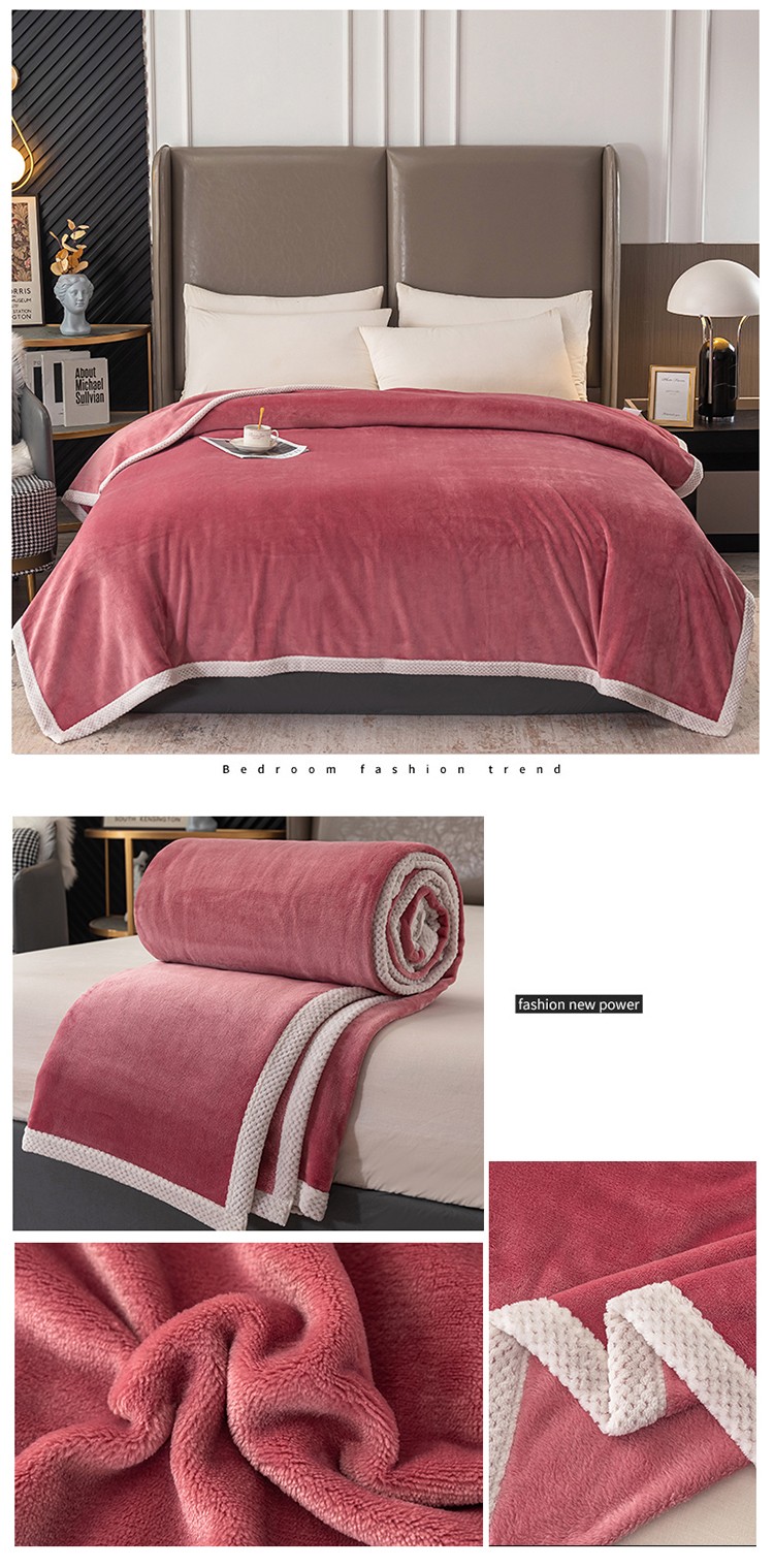 (总)高克重双面牛奶绒毛毯法莱绒毛毯盖毯睡毯菠萝格包边毯子,恋人粉,高级灰,香槟金,樱花粉,绅士灰,湖蓝