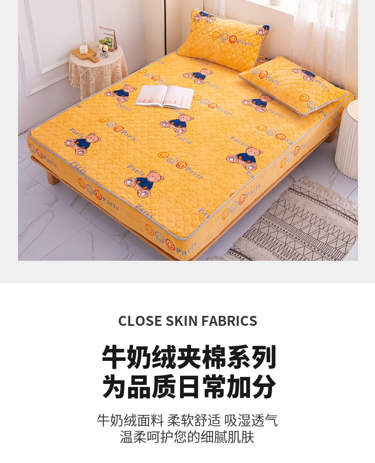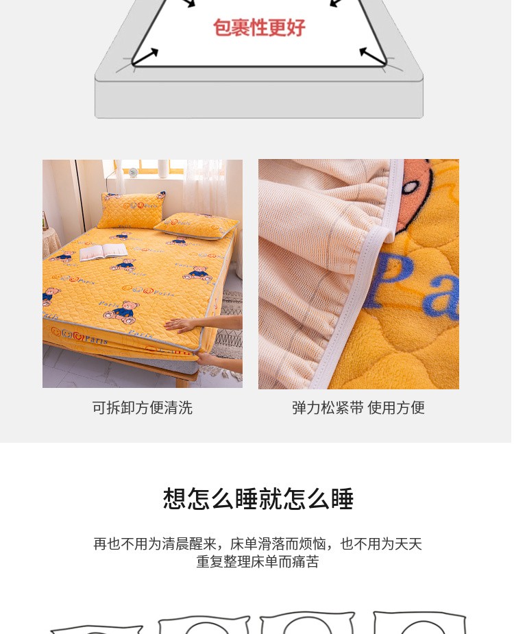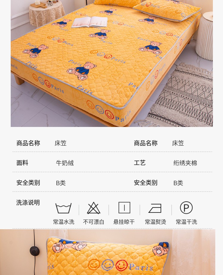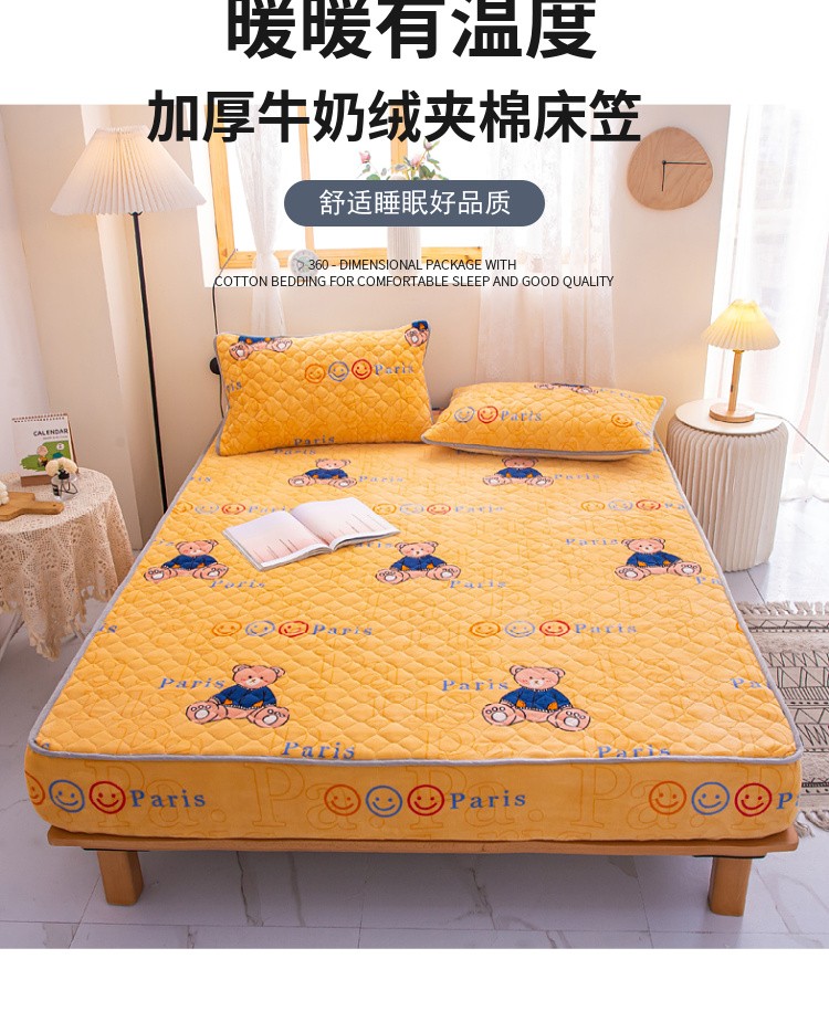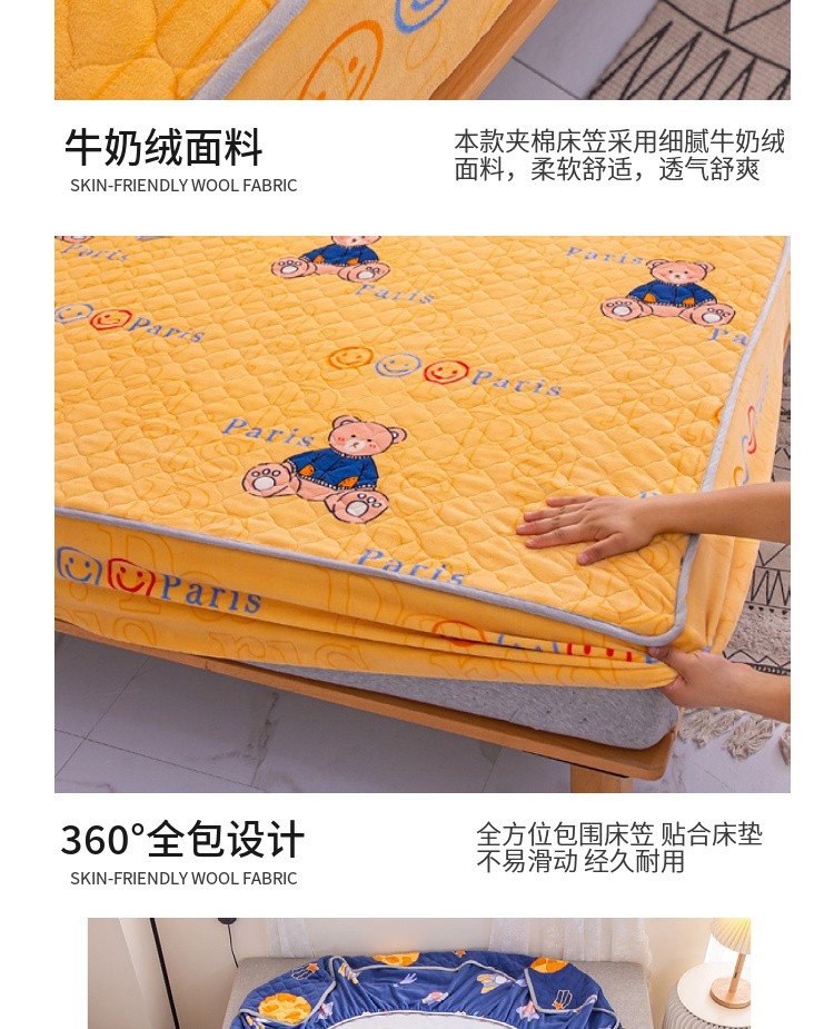 • 91家纺网 家纺一手货源 找家纺 小虾米 2022新款大床牛奶绒夹棉床笠 巴黎熊