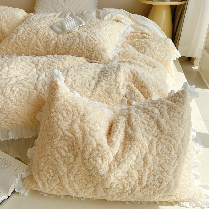 商品名称:嗨购 2022新款绗绣泰迪绒玫瑰花边四件套 米黄