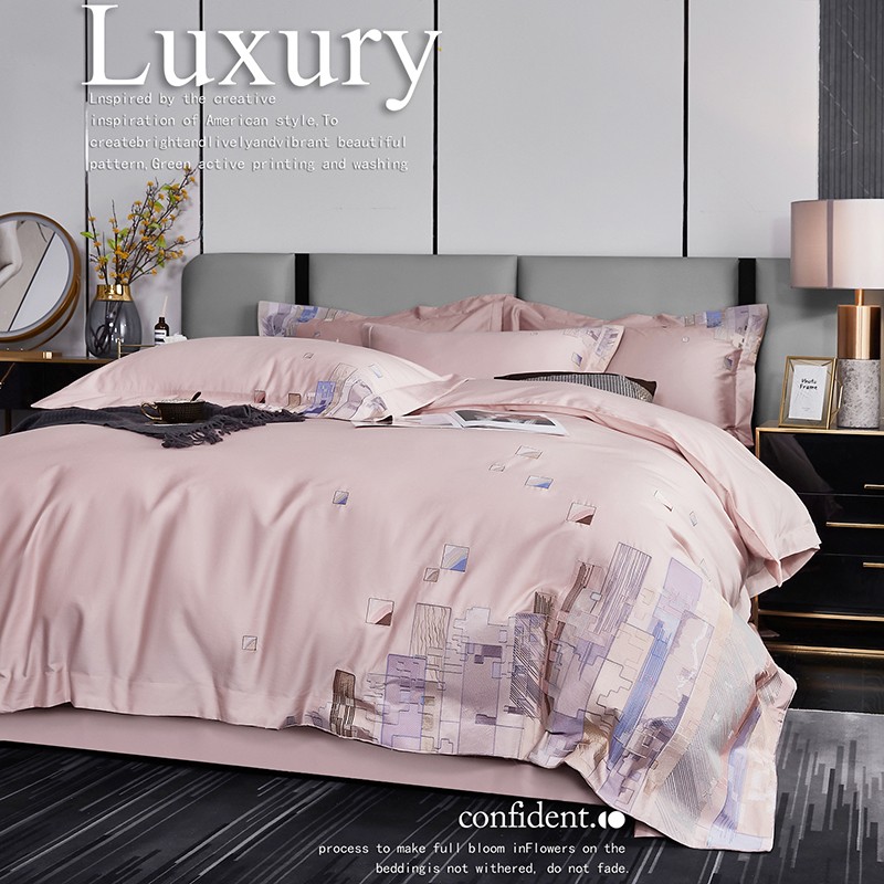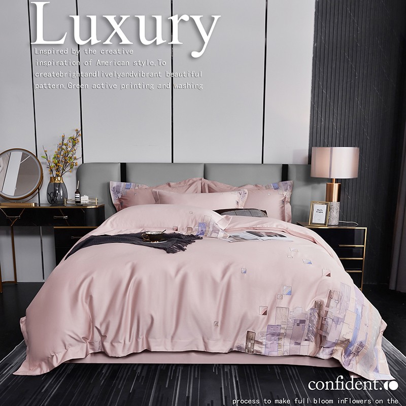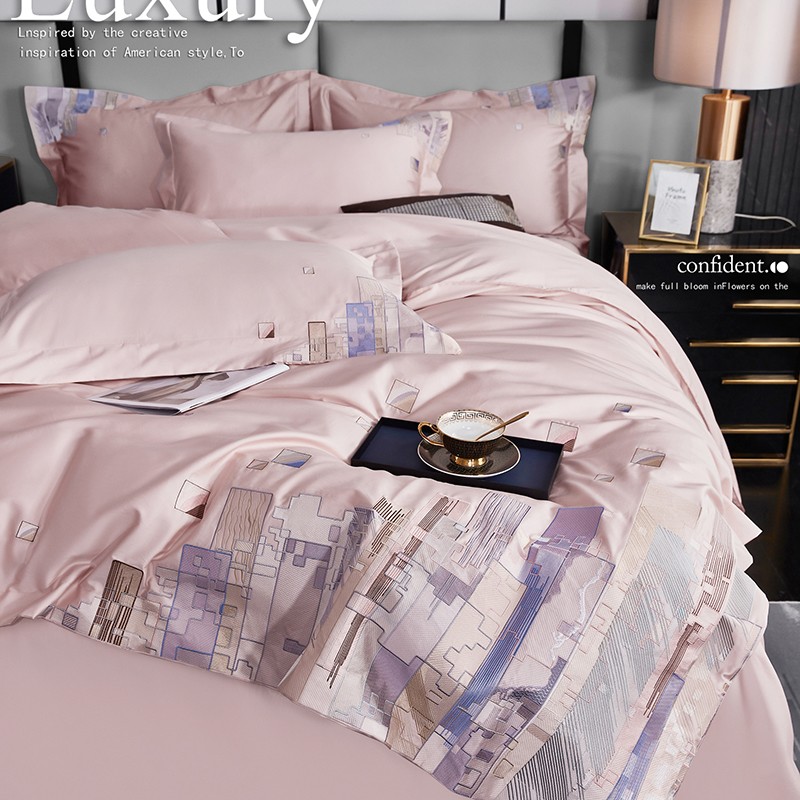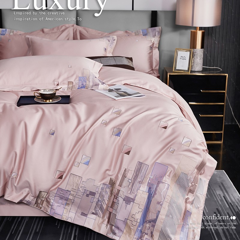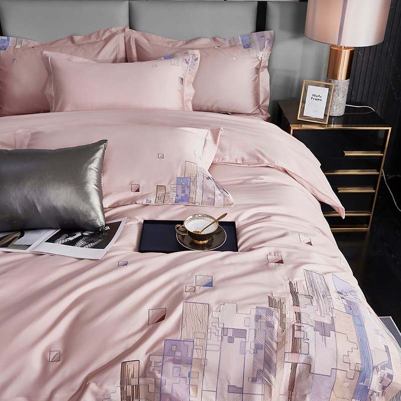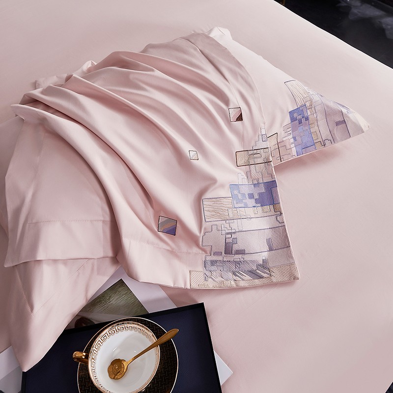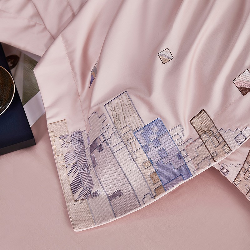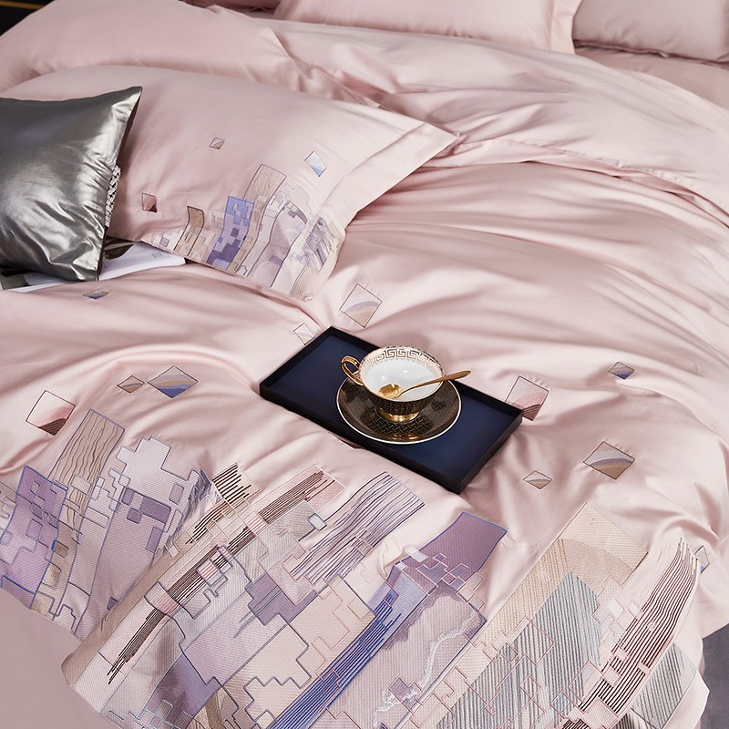宅家居24新款180支阿克苏长绒棉刺绣全棉四件套-慕森初夏粉