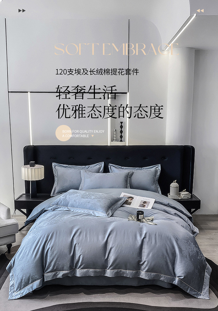 网客 2024新款120支提花轻奢四件套安娜墨尔本系列 墨尔本-轻奢蓝