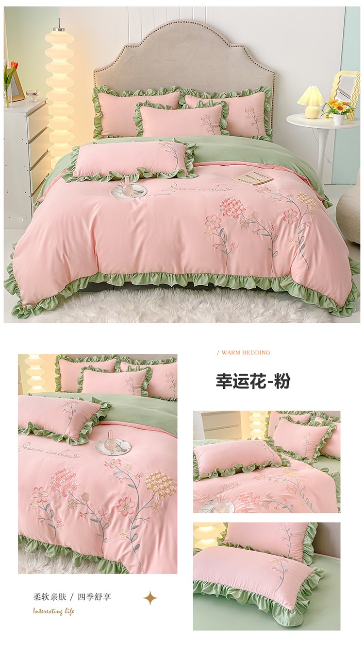 商品名称:富盛 2024新款水洗亲肤棉刺绣四件套公主风四件套 幸运花—粉