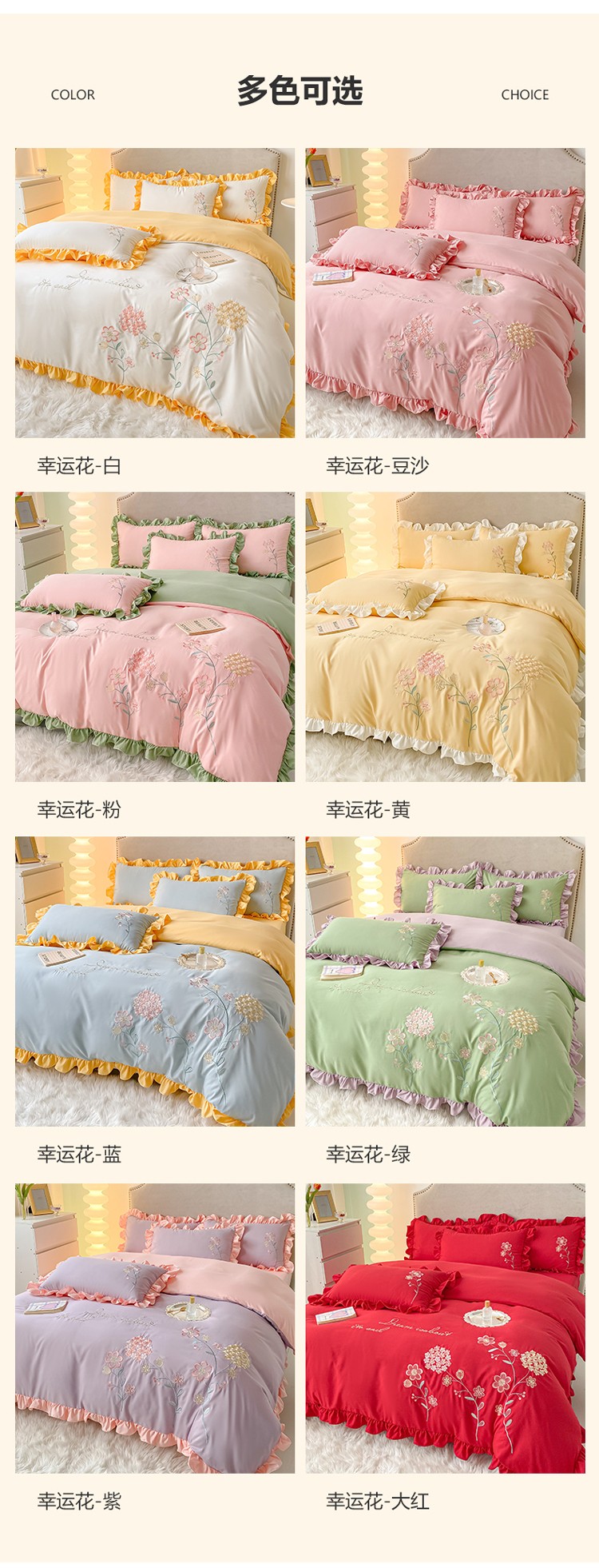 (总)富盛 2024新款水洗亲肤棉刺绣四件套公主风四件套,幸运花—白,幸运花—粉,幸运花—黄,幸运花—蓝,幸运花—豆沙,幸运花—紫,幸运花—大红,幸运花—绿