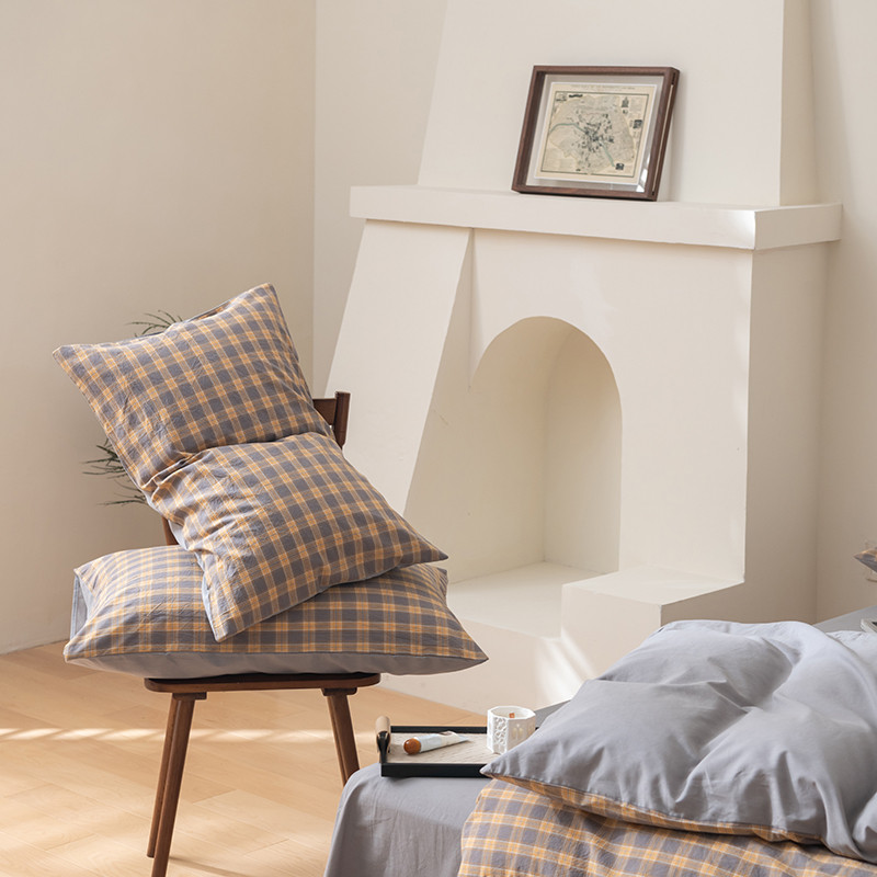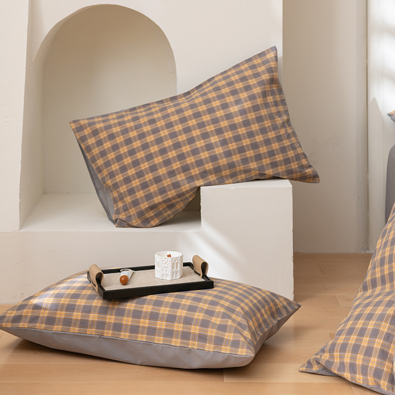 商品名称:柠馨 2023新款全棉色织水洗棉单品枕套 格纹咖
