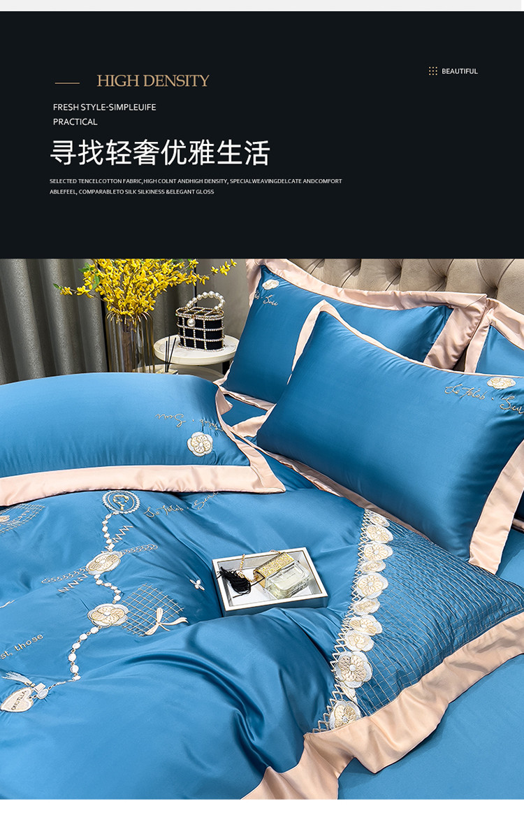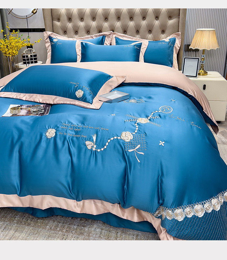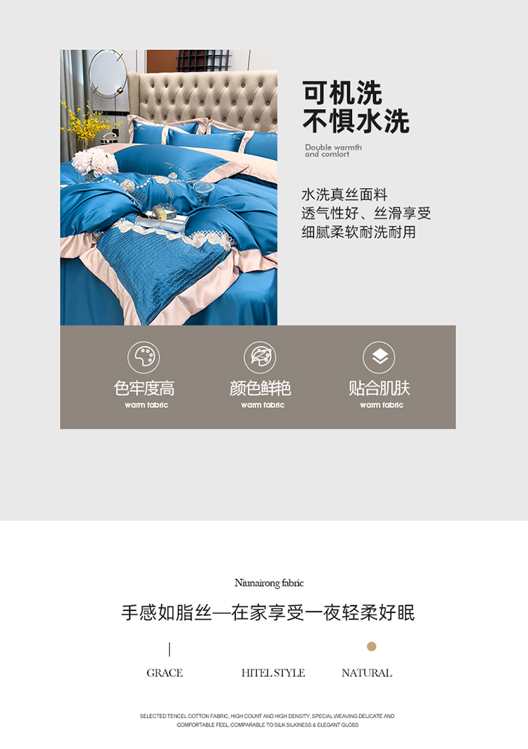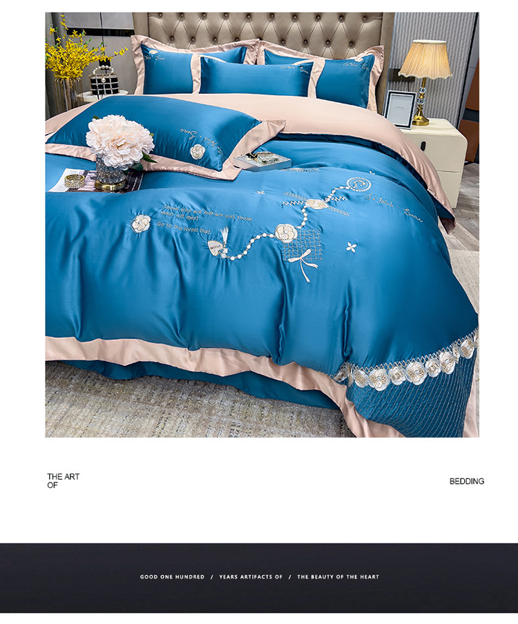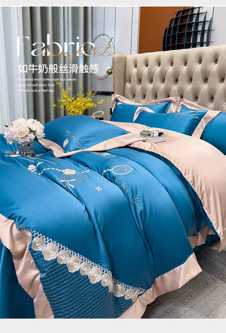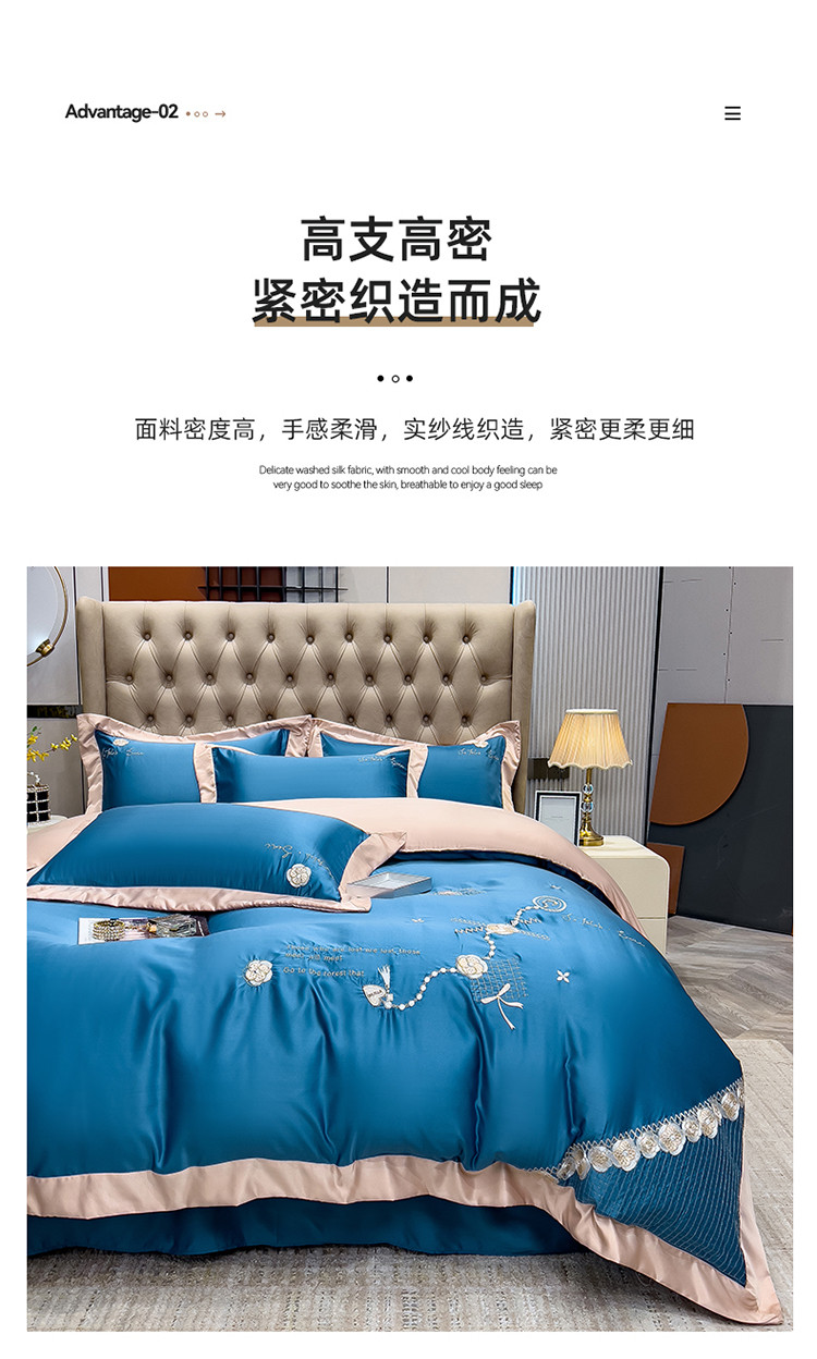 商品名称:绒世界 2024新款水洗真丝莱娅系列四件套 莱娅-宾利蓝