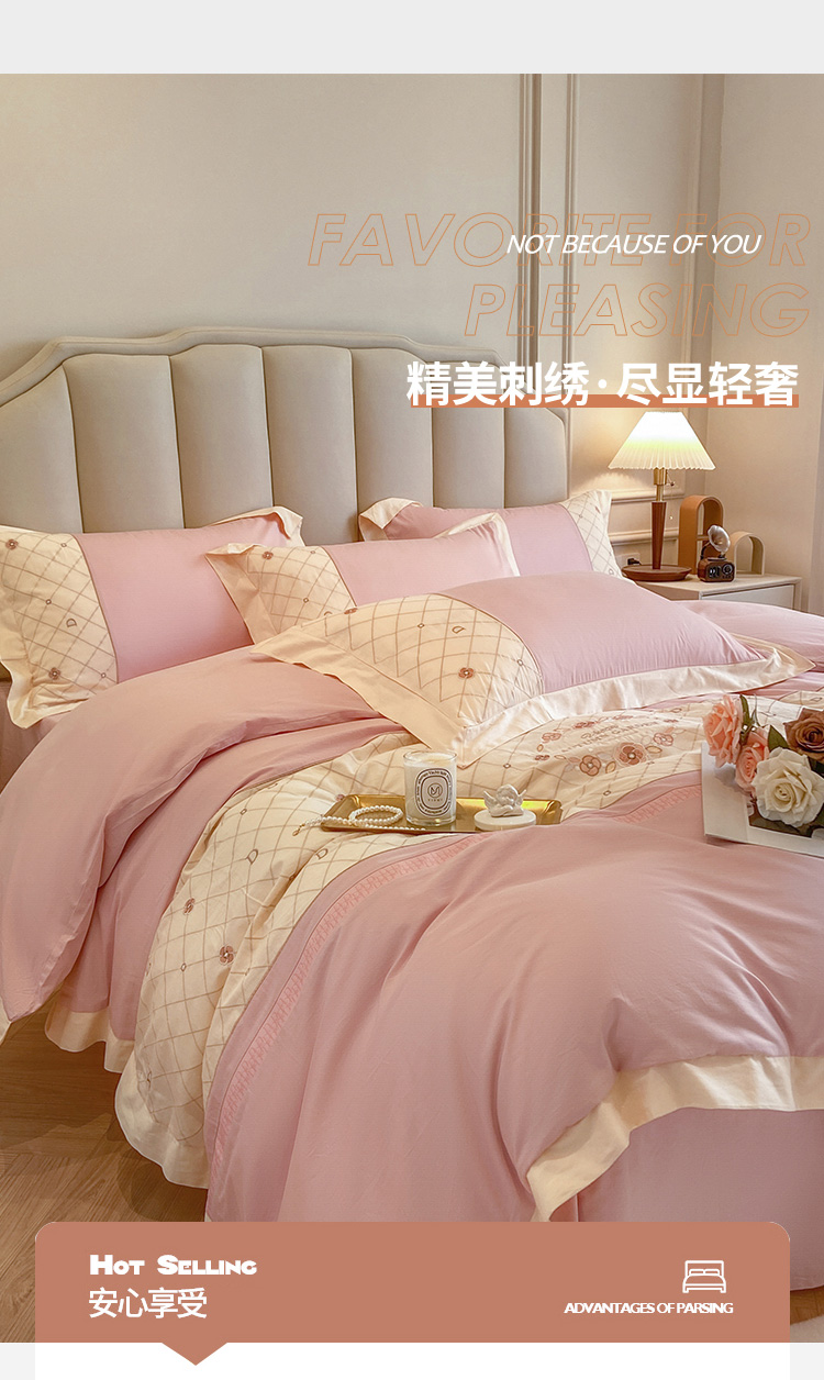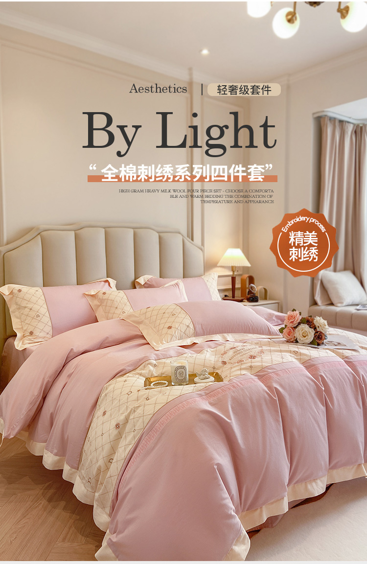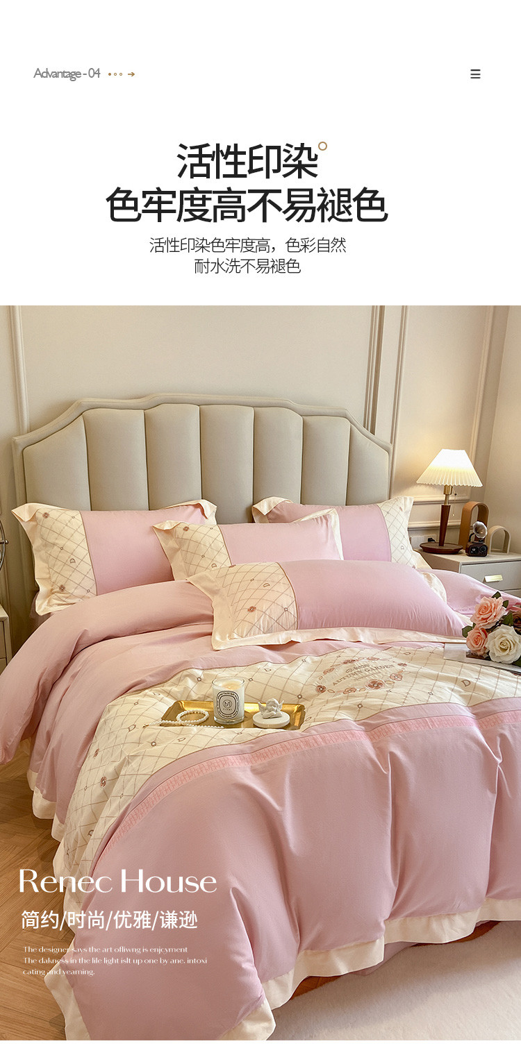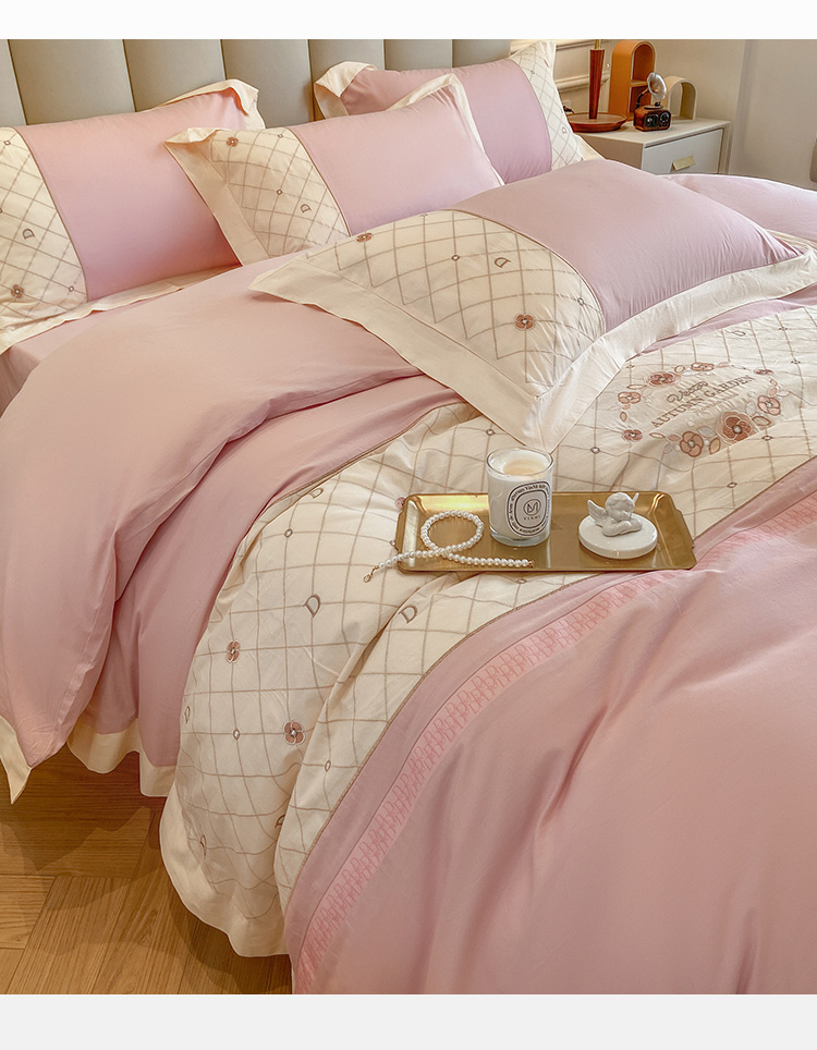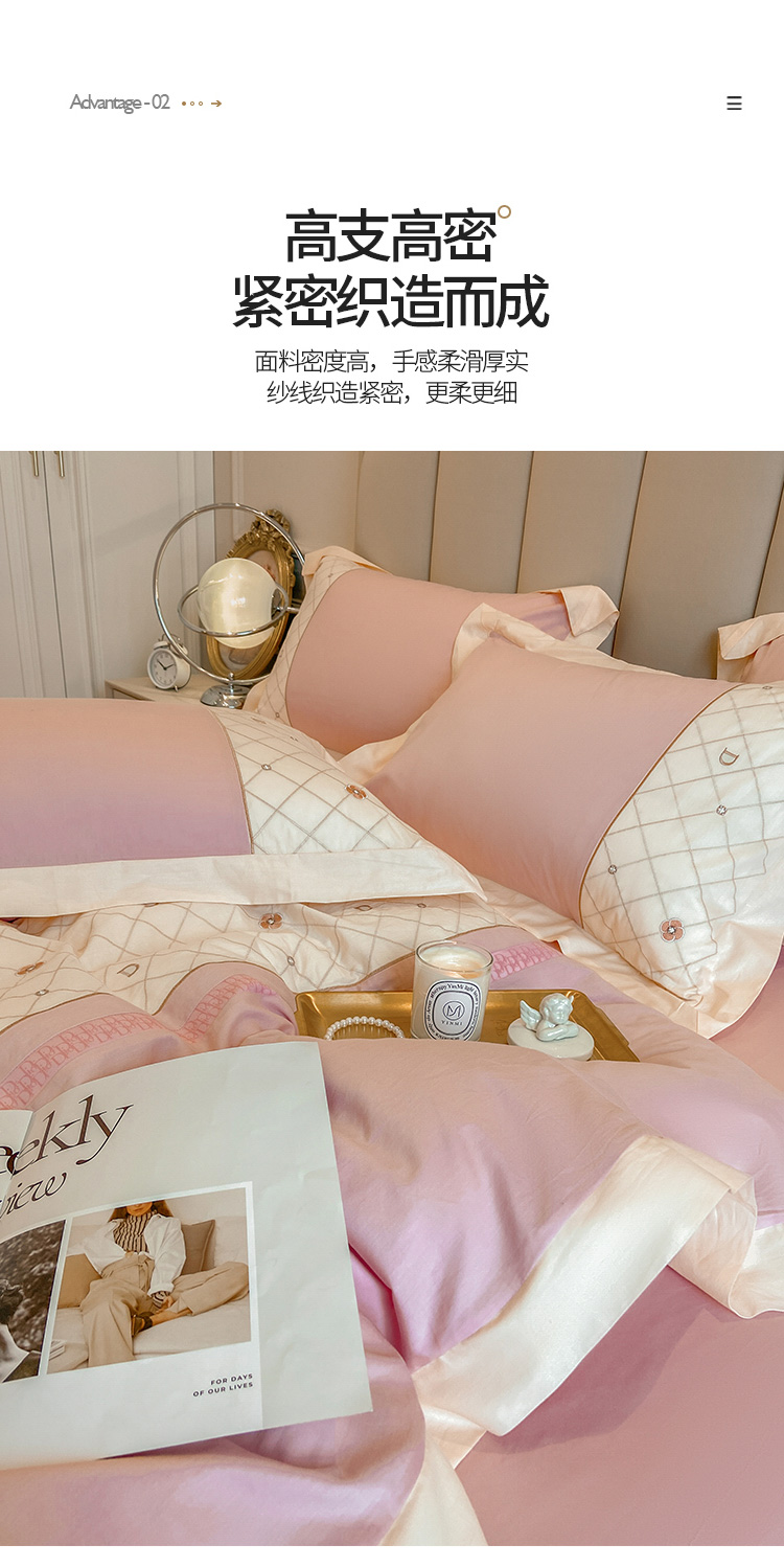 绒世界绒世界 2025纯棉四季款春夏新品60s全棉刺绣绣花四件套 菲曼-香芋紫