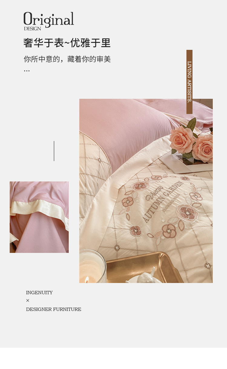 商品名称:绒世界绒世界 2025纯棉四季款春夏新品60s全棉刺绣绣花四件套 菲曼-香芋紫