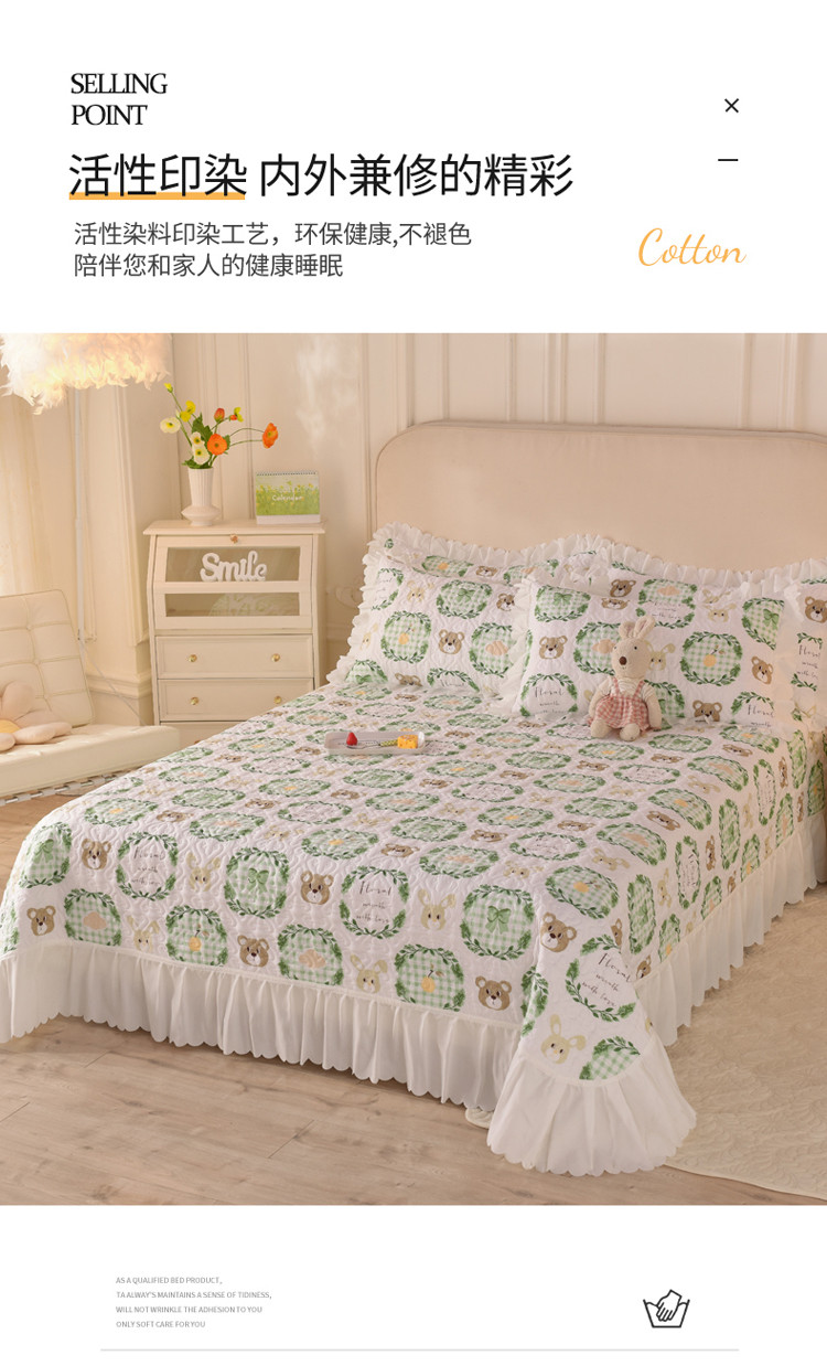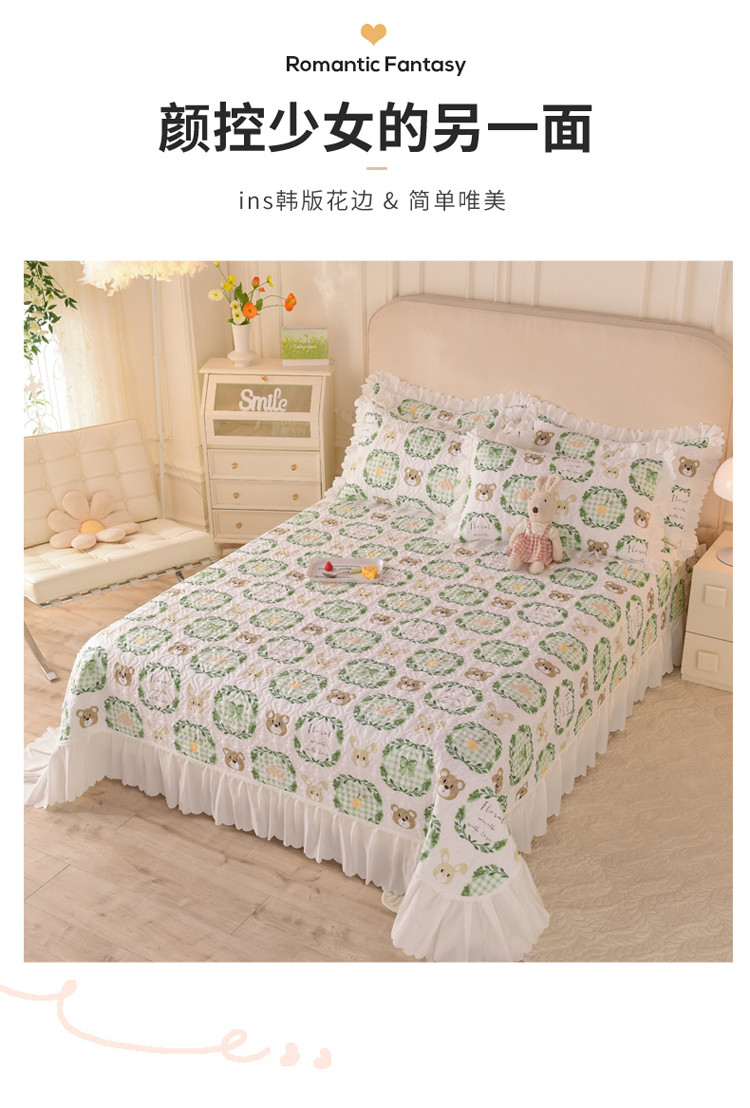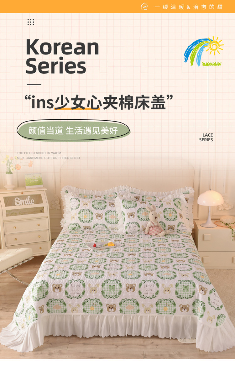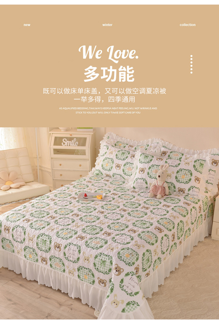 商品名称:绒世界 2024新款水洗棉韩版夹棉床盖系列 格调熊