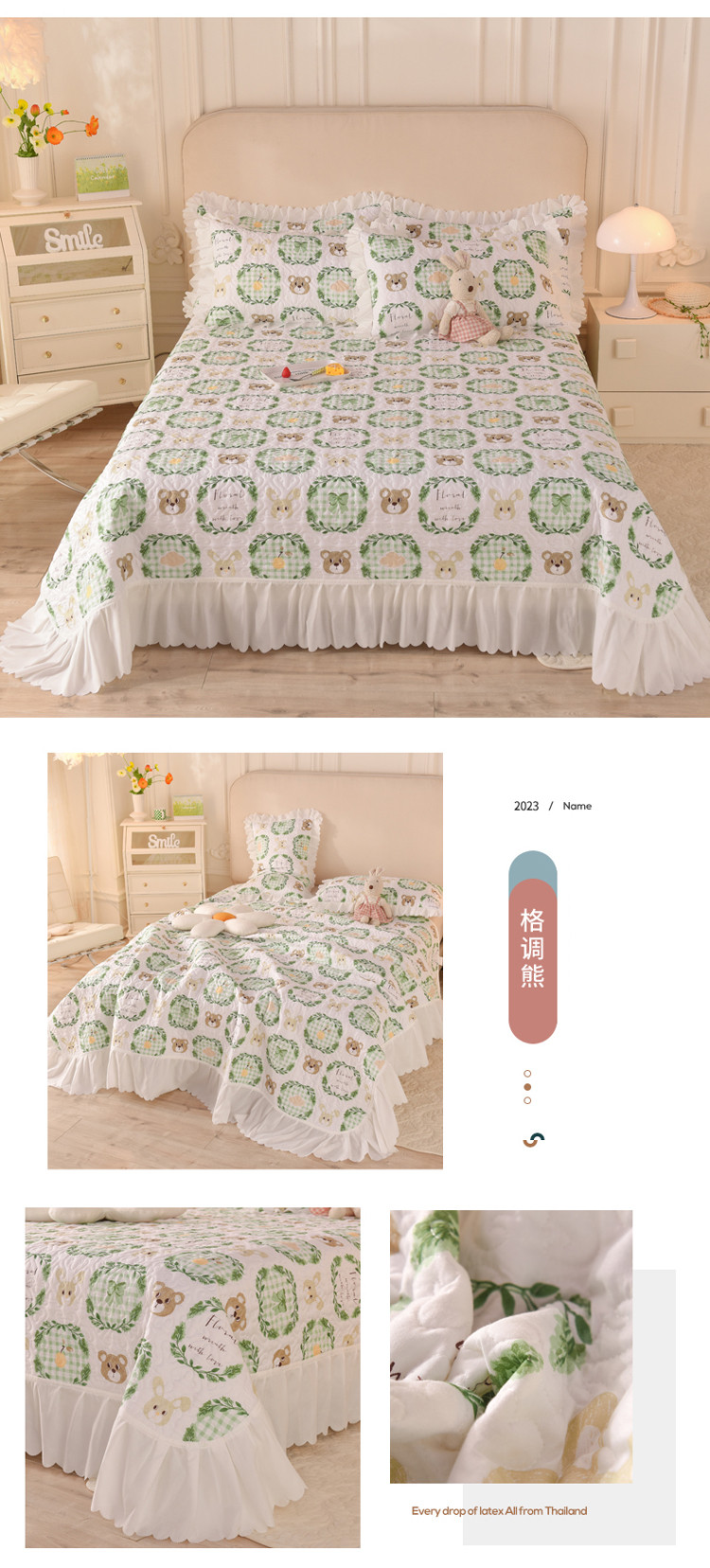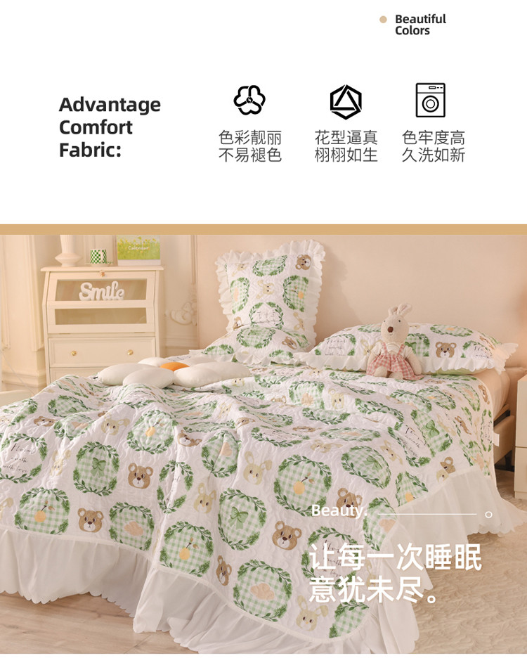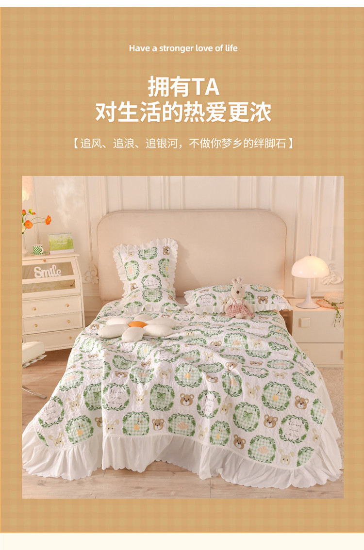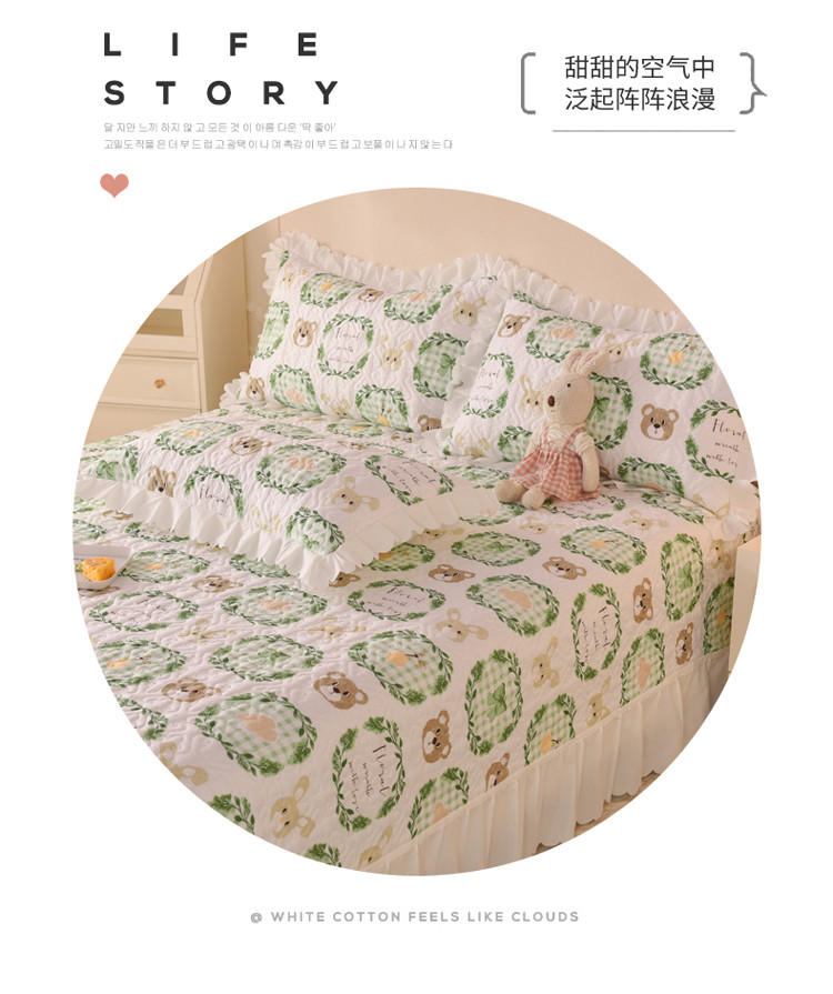 商品名称:绒世界 2024新款水洗棉韩版夹棉床盖系列 格调熊