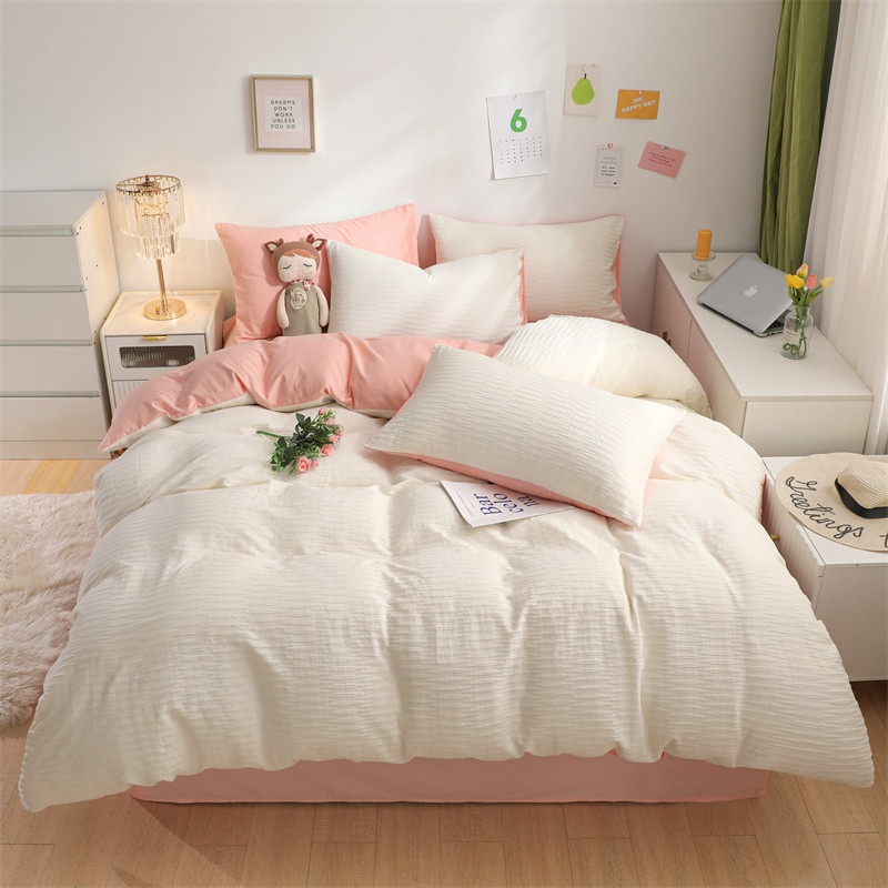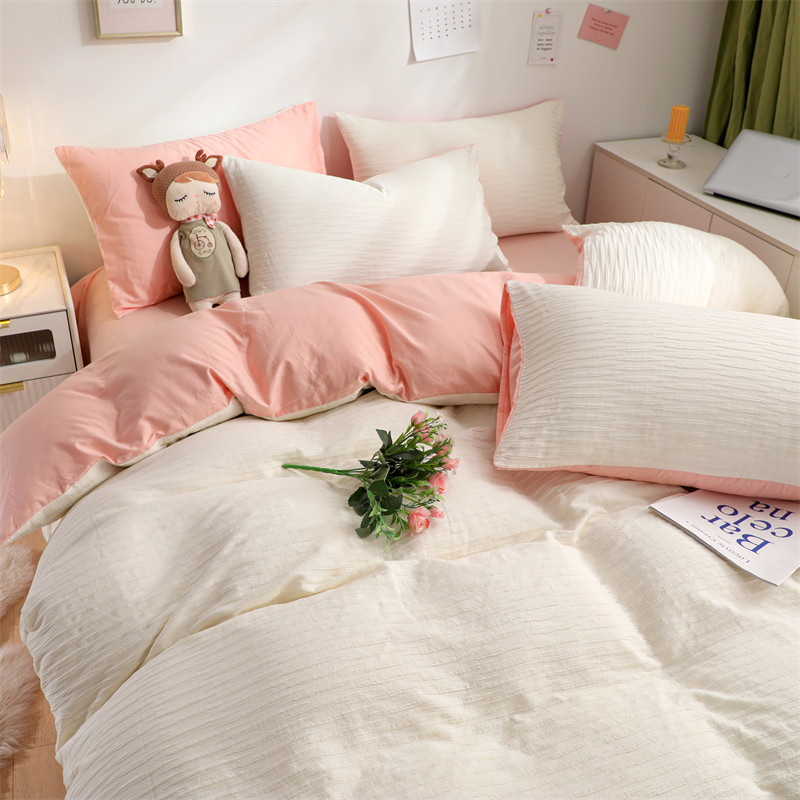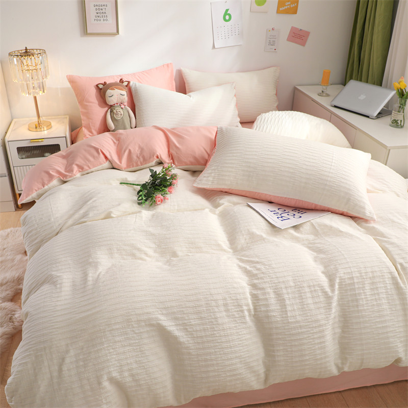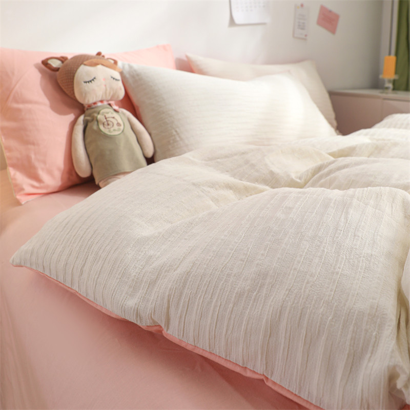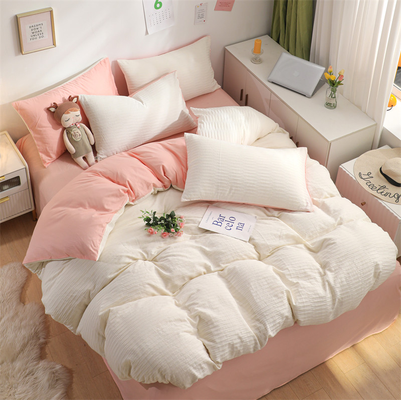 沐晴家纺 2023新款泡泡纱四件套 白粉玉