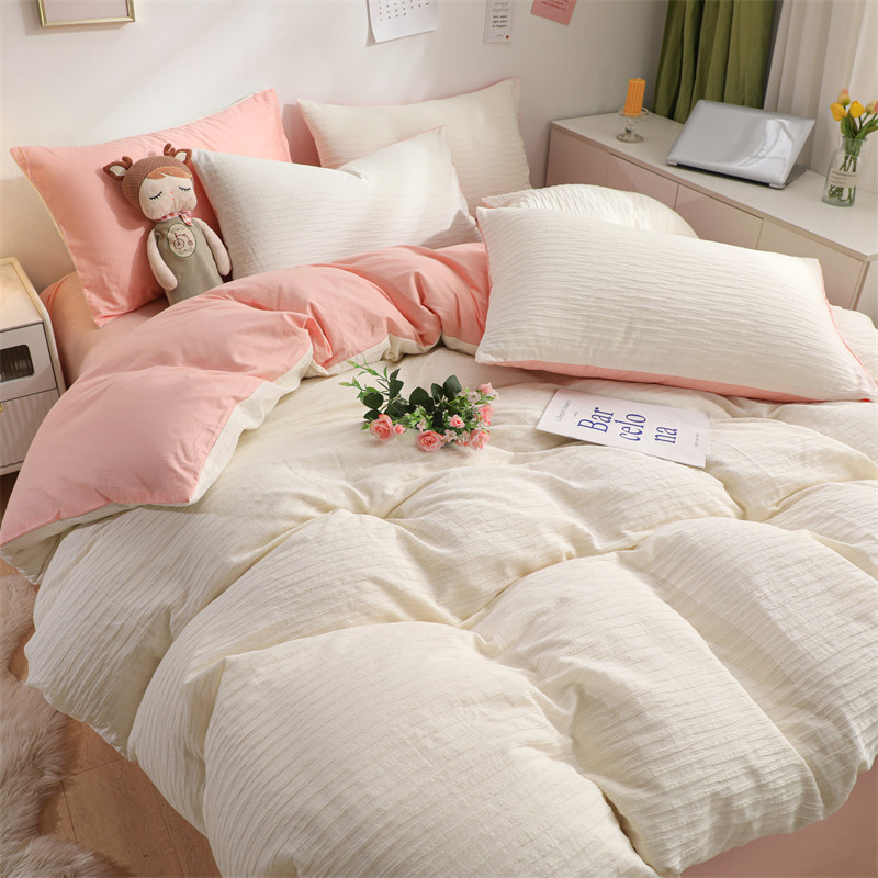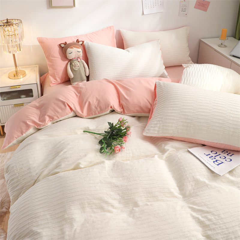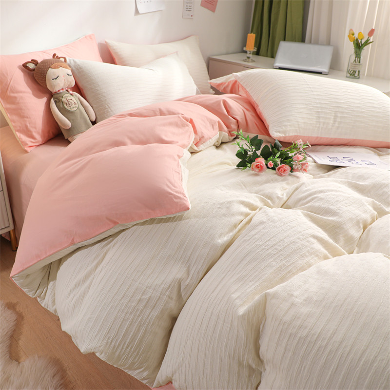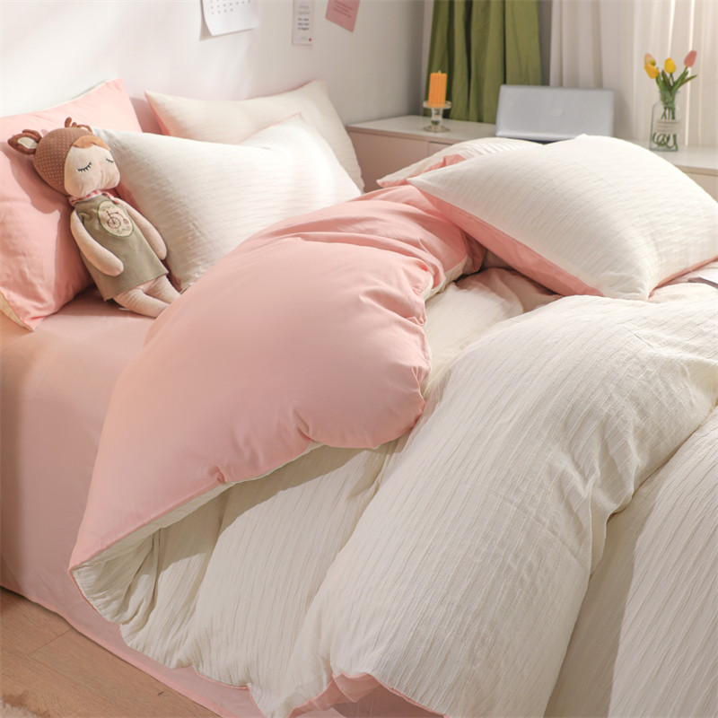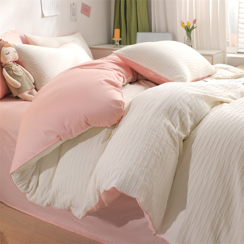 沐晴家纺 2023新款泡泡纱四件套 白粉玉
