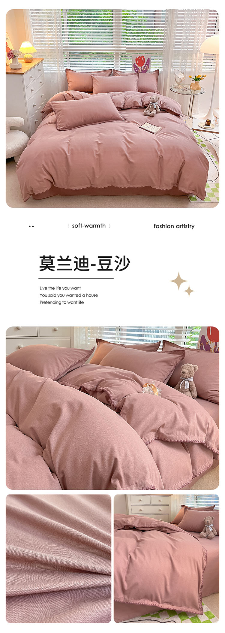 (总)帅露家纺 2025新款全棉轻奢加厚磨毛纽扣款四件套,格律时尚,光遇-咖,品思-灰,千屿-卡其,拾光-灰,随感-红咖,随感-绿,温言-浅咖,雾林-浅灰,寻山-豆沙,雅集-咖,云裳,知凡