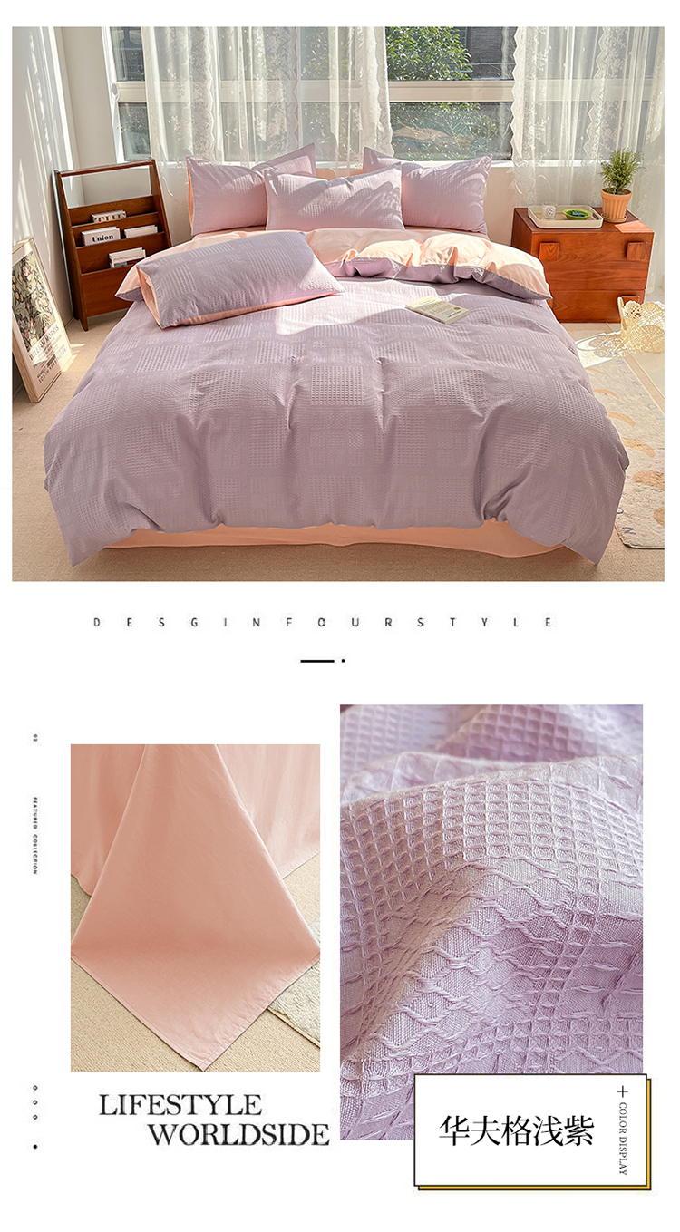商品名称:蓝巢2023新款A版60支全棉华夫格B版40支全棉水洗棉四件套蜜格系列 华夫格浅紫
