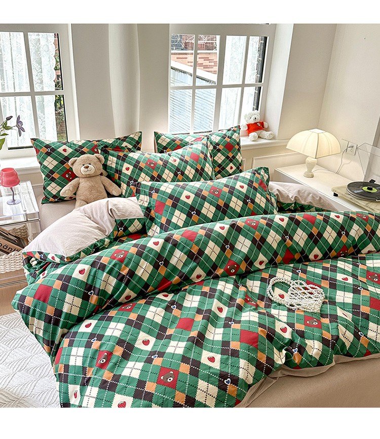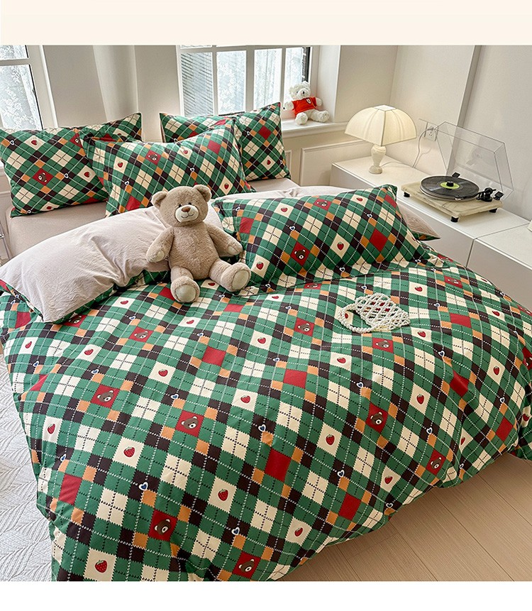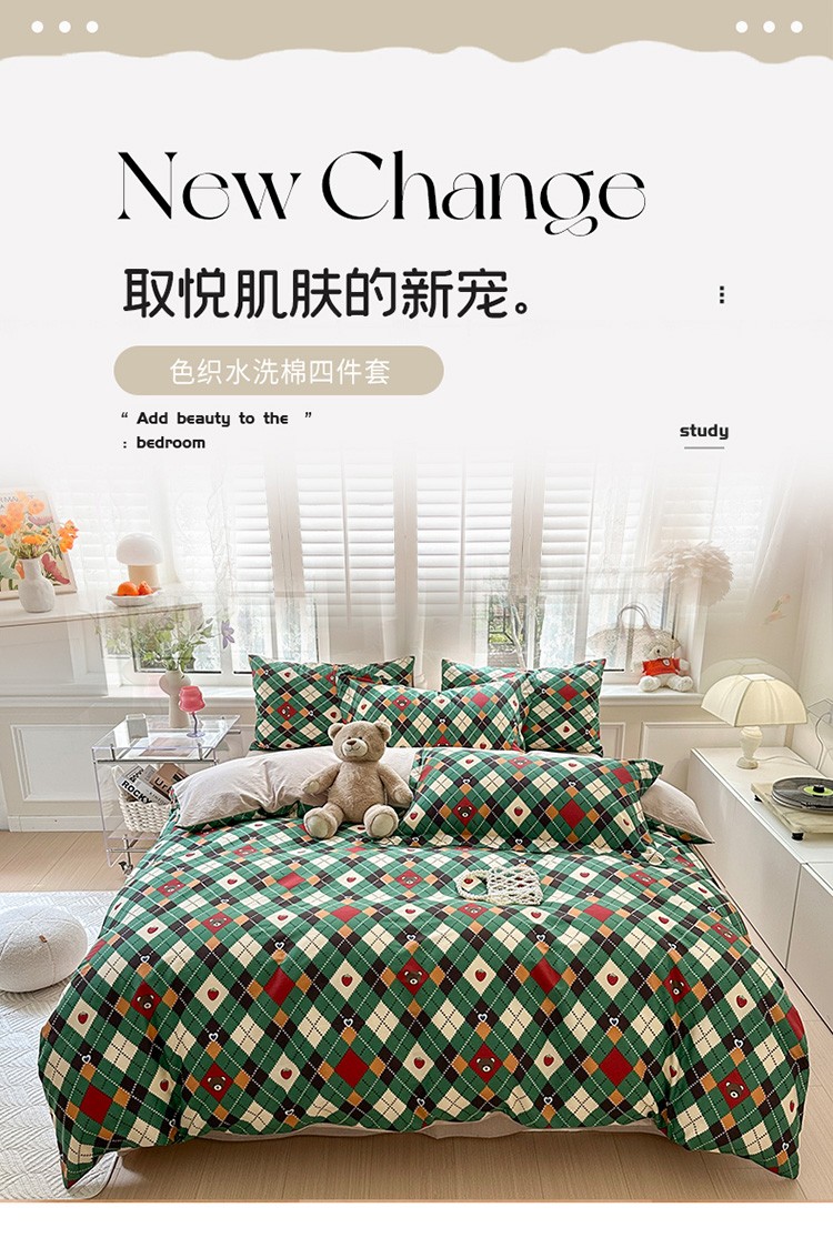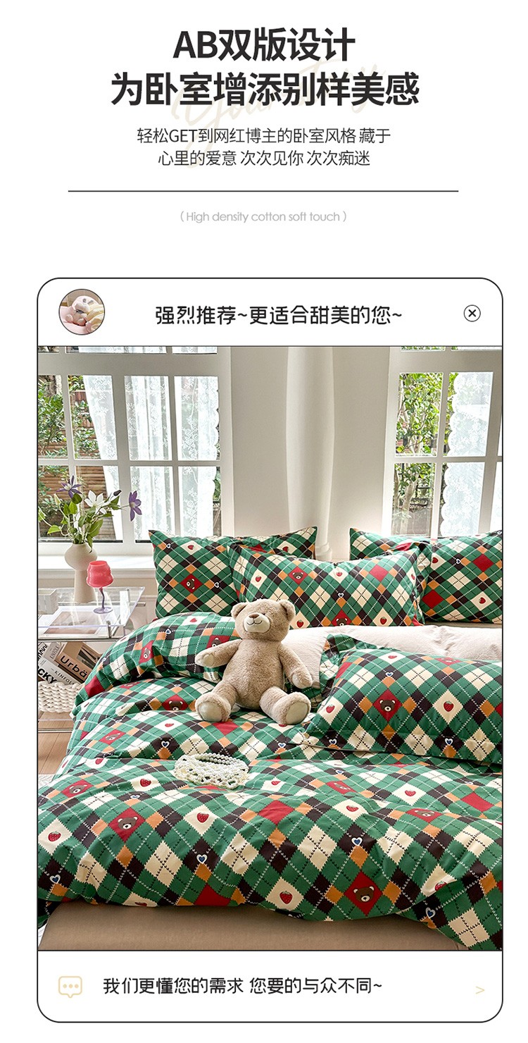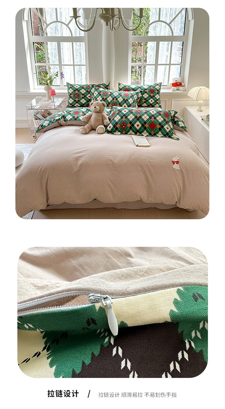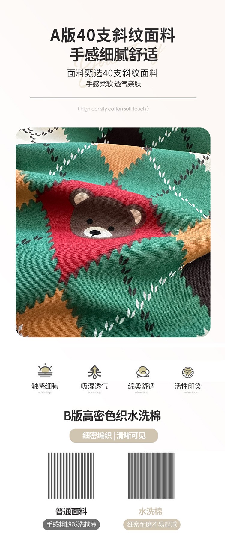 商品名称:嘉汀兰 2023新款被套AB两用全棉水洗棉印花绣花四件套 圣诞熊